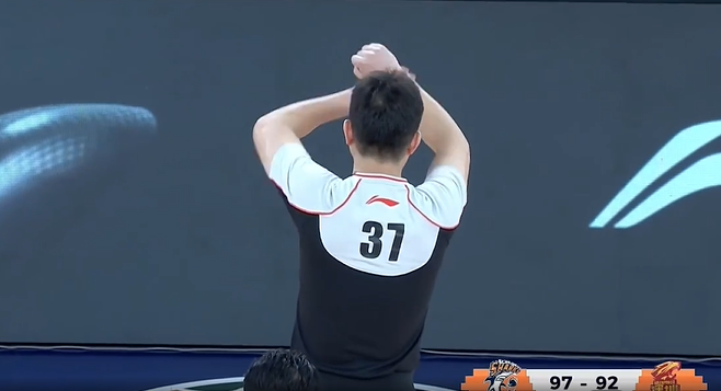 周鹏对偰李永炜战术犯规,裁判吹罚前者违体犯规