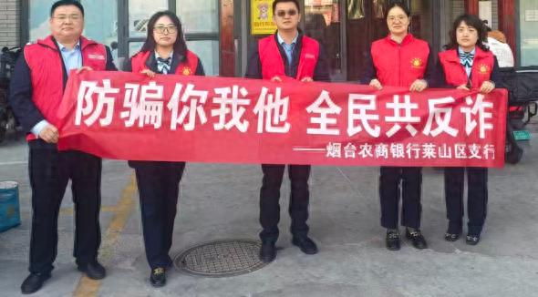近日,烟台农商银行莱山区黄海路支行以党建为引领,组织党员及员工代表走进埠岚社区烟大小吃街,开展“防骗你我他全民共反诈”主题党建+金融服务活动。