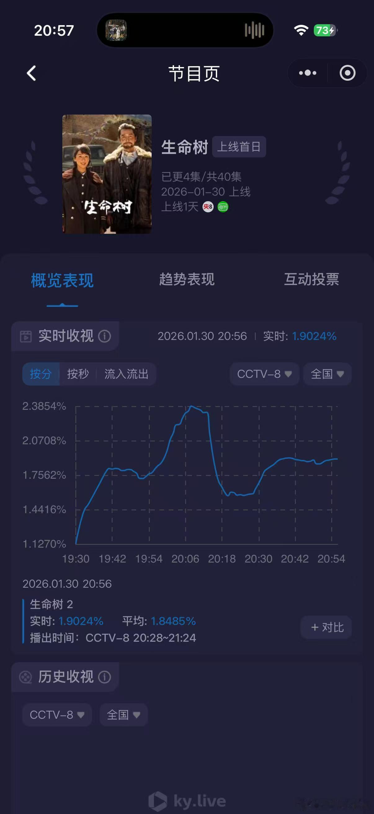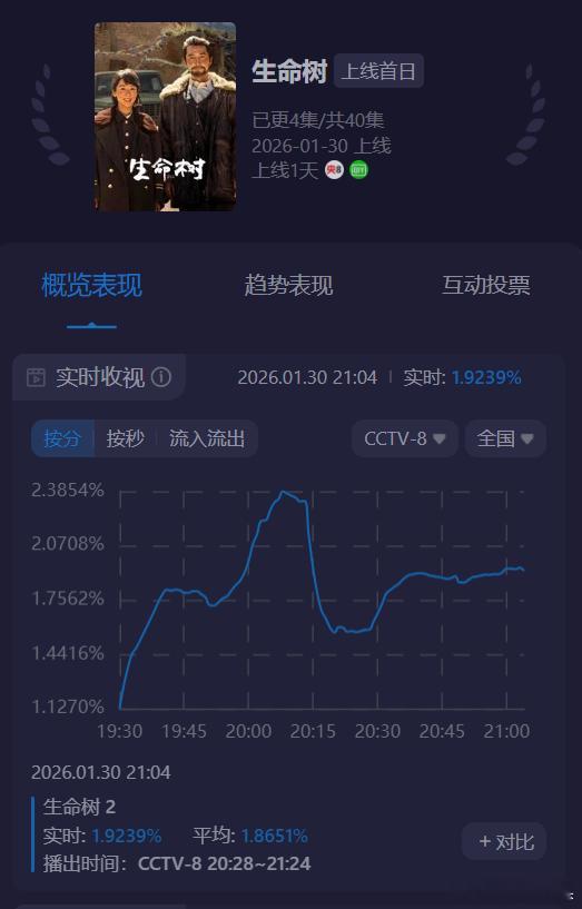 生命树好档期,寒假开播,和狂飙一个档,播成这样。今日开播走势明显不太好,第二集直