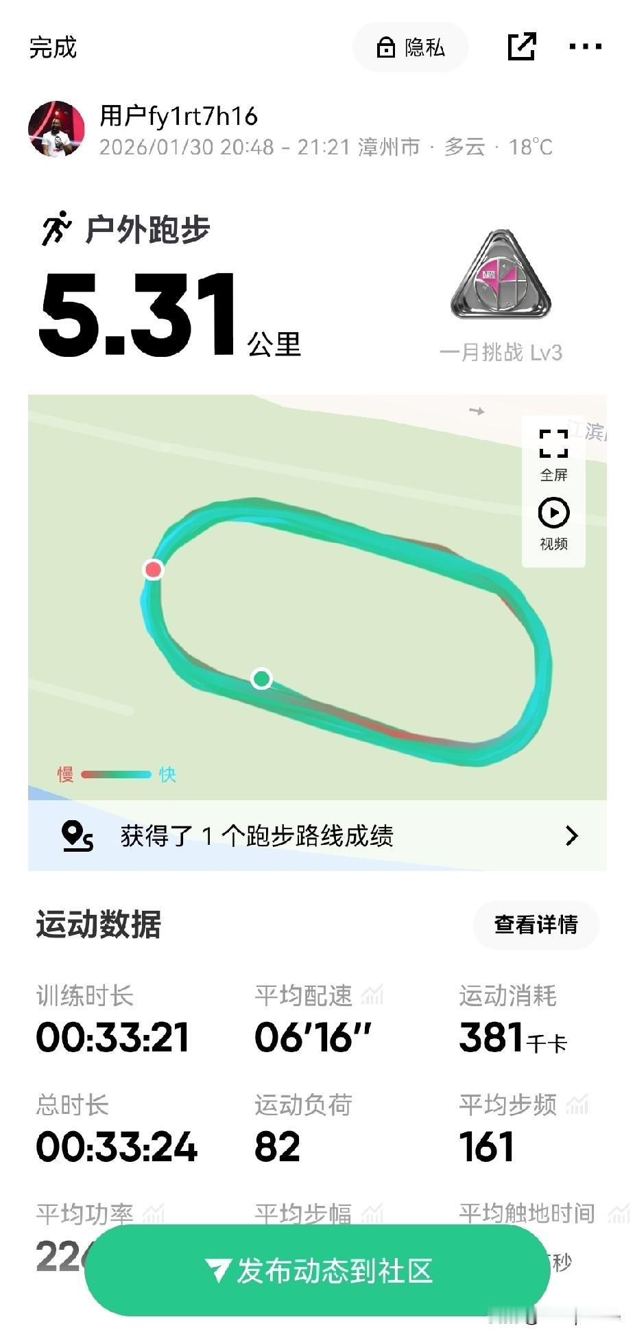 这可能是这个月的最后一次跑步了,昨天因为工作需求,喝了点酒,今天跑起来感觉非常沉重,双腿跟灌了铅一样,本来给自己的计划是10公里慢跑,结果不仅配速没提上去,目标也没有完成,还是有些许失落,明天是这个月的最后一天,也是父亲的60岁生日,刚好给自己调整一下,做一次总结,下个月争取完成自己定制的目标,有效的提高自己!同时也提前给各位友友拜个早年:祝大家新年快乐,阖家安康![招财进宝][招财进宝][招财进宝]十公里跑者 跑步