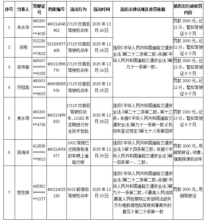 根据《中华人民共和国行政处罚法》第四十四条和《公安机关办理行政案件程序规定》第一百六十八条的规定,现对部分违法驾驶人拟作出的处罚决定公告如下: