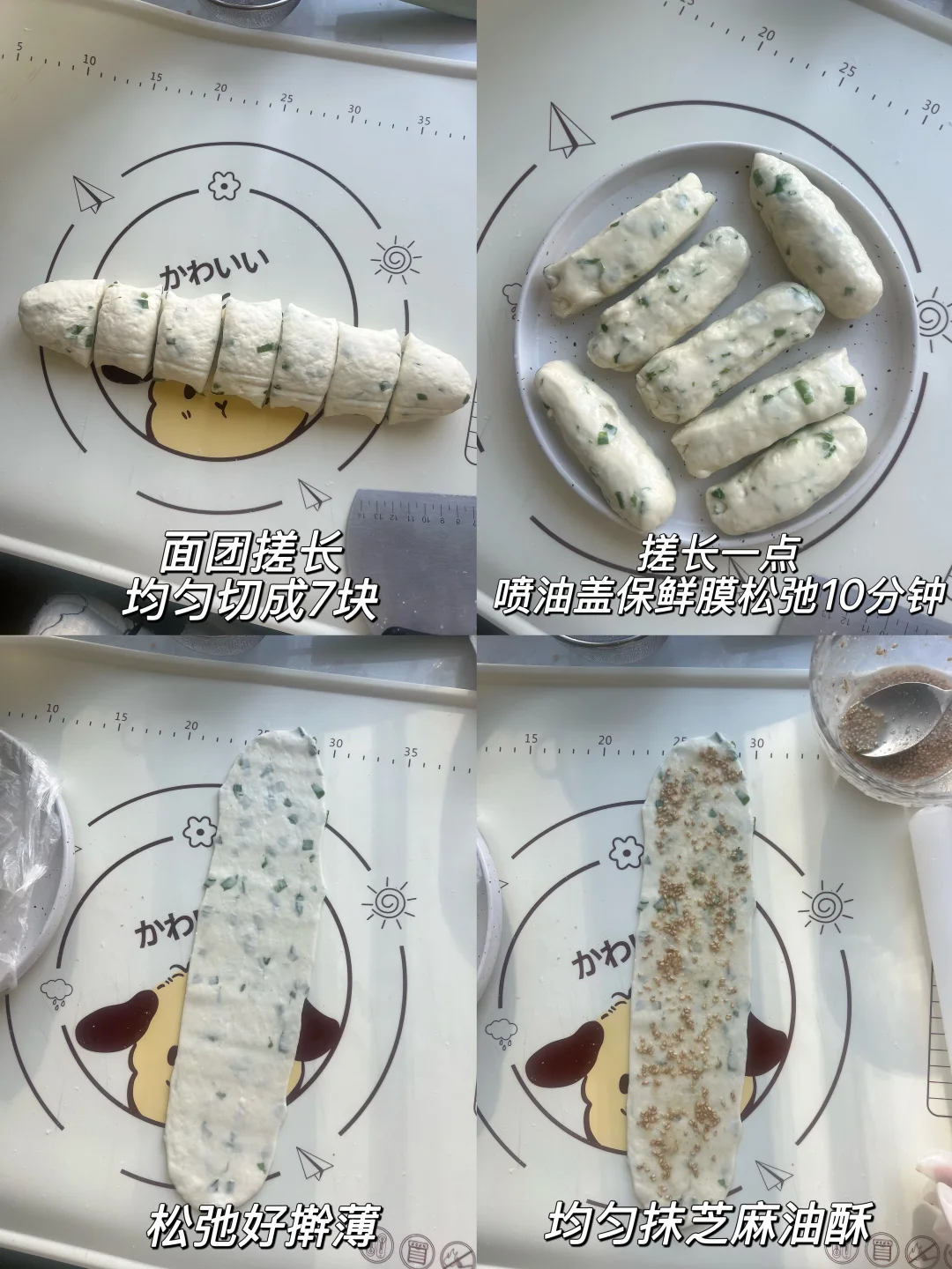 诚不欺我 原配方400g面粉,我怕第一次尝试做不好减量了,250g面粉大概能做7个饼 芝麻油酥做法在最后一张图,芝麻的用量我觉得随意,油酥只需要两勺,剩下的可以装起以后继续用 虽然芝麻盐里加了盐但是没什么味道(不知道是不是我放盐放少了),喜欢吃咸口可以在油酥里加一点盐 —— ✅食材 面粉250g、清水156g、干酵母2.5g、白糖一小勺、葱花适量 油酥:芝麻盐2勺、面粉2勺、五香粉(花椒粉)适量、热油适量