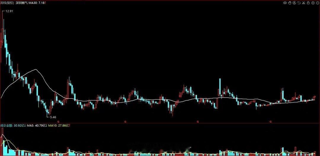 2. 深圳燃气(现价6.89元)与深圳国氢新能源深度合作,聚焦加氢站建设、天然气掺氢技术及燃料电池热电联供等前沿领域;中央汇金重仓2745万股,为第六大流通股东。值得注意的是,公司股价自2022年4月起进入横盘周期,至今已近4年,蓄力特征明显。