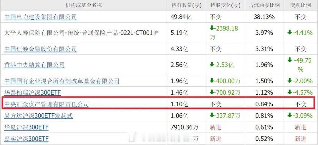 6. 中国能建(现价2.43元)子公司中电工程黑龙江院中标大庆40兆瓦氢燃料电池发电项目EPC总承包工程,项目落地能力突出;三季度中央汇金重仓3.07亿股,为第六大流通股东,是六家企业中股价最低的标的。