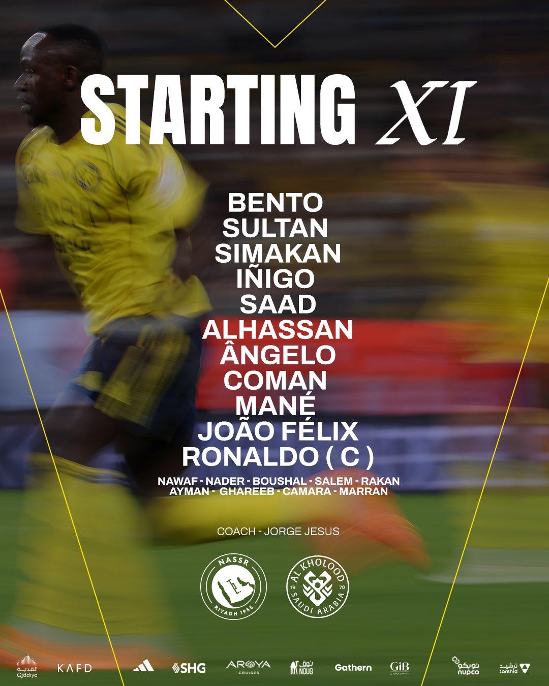 拉丝永恒VS利雅得胜利首发:C罗领衔,马内、菲利克斯出战