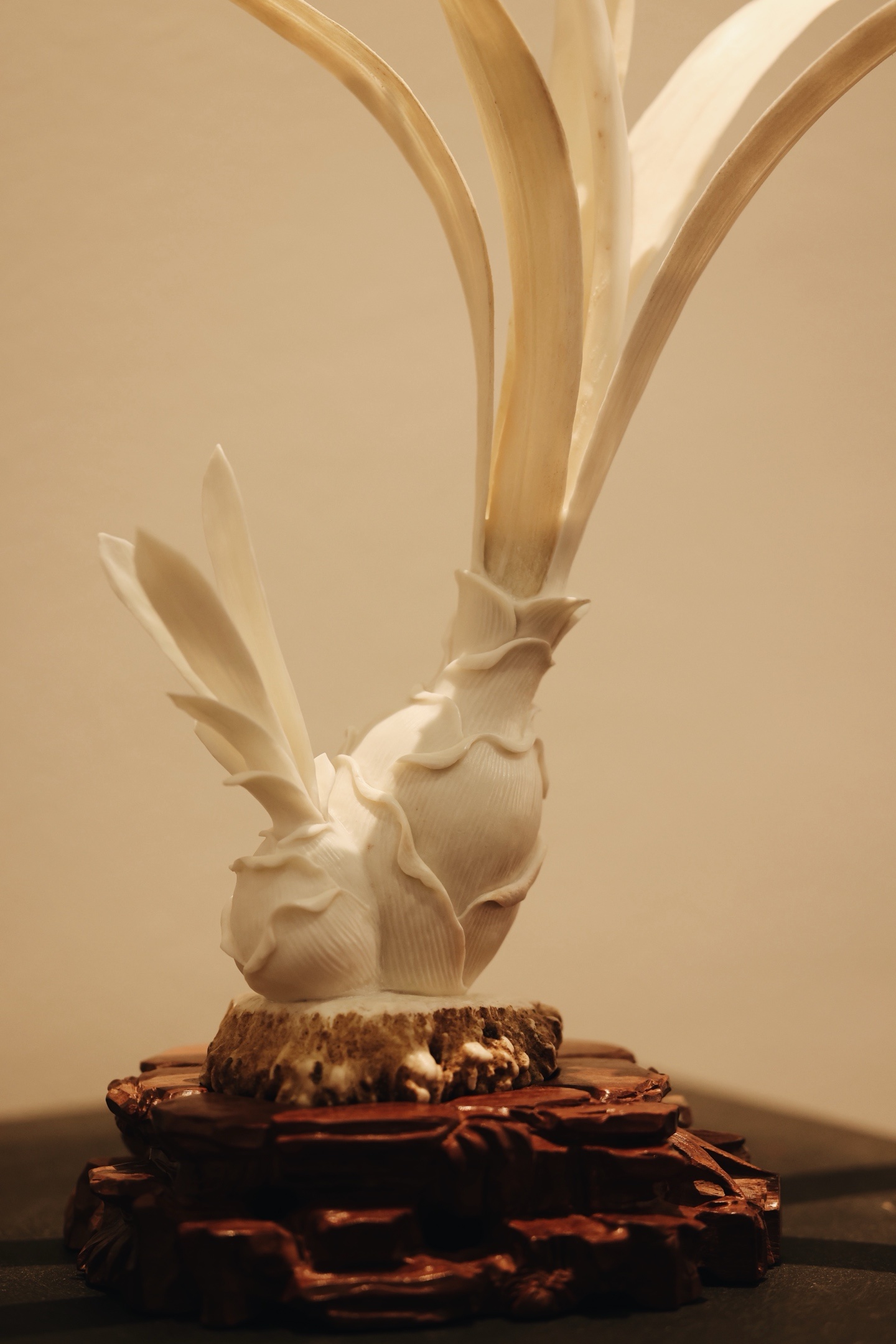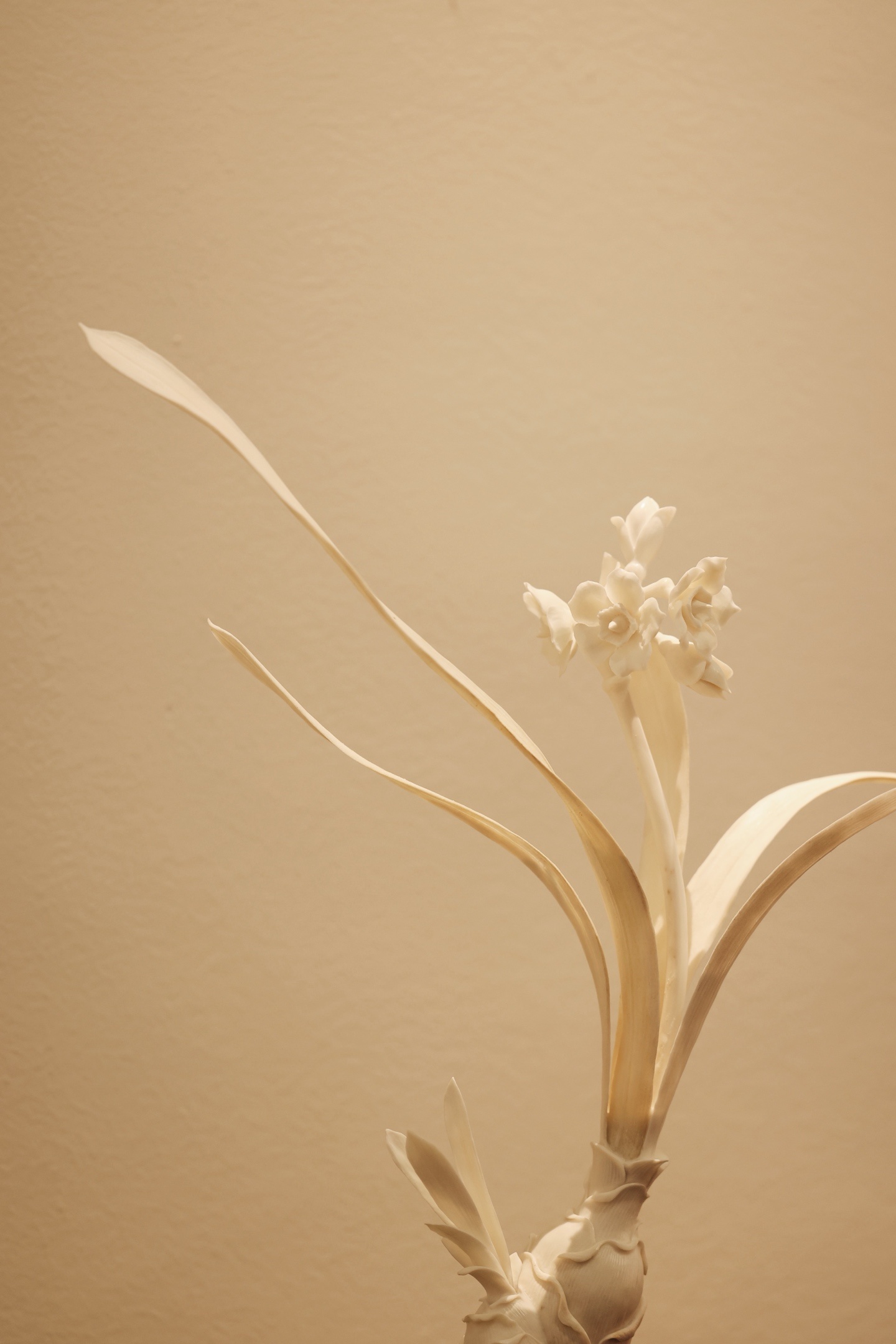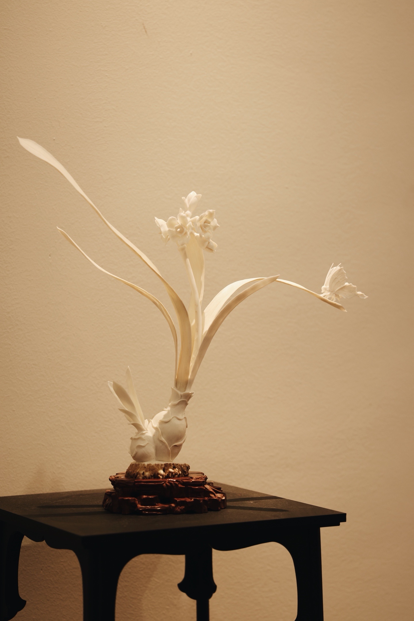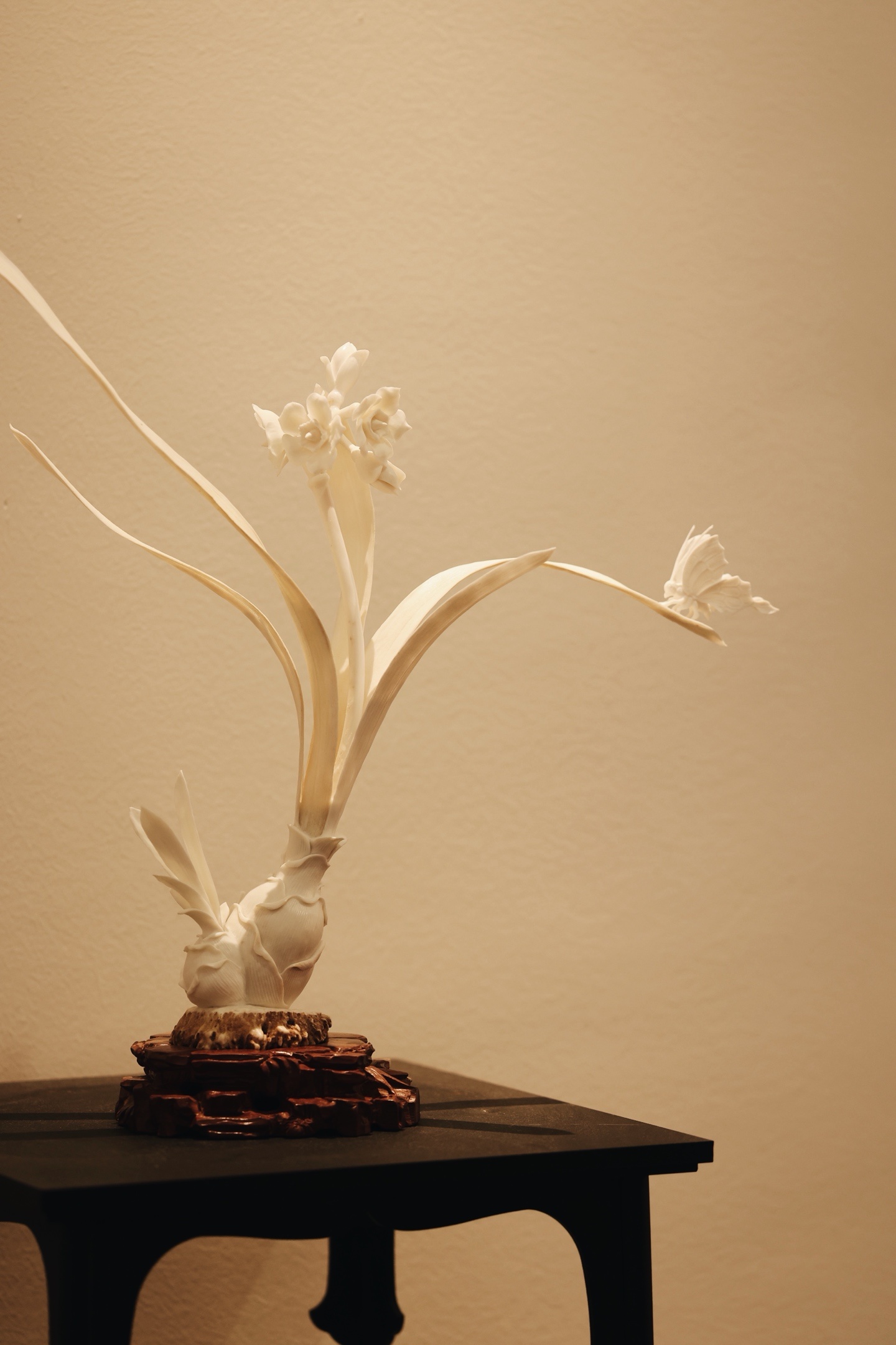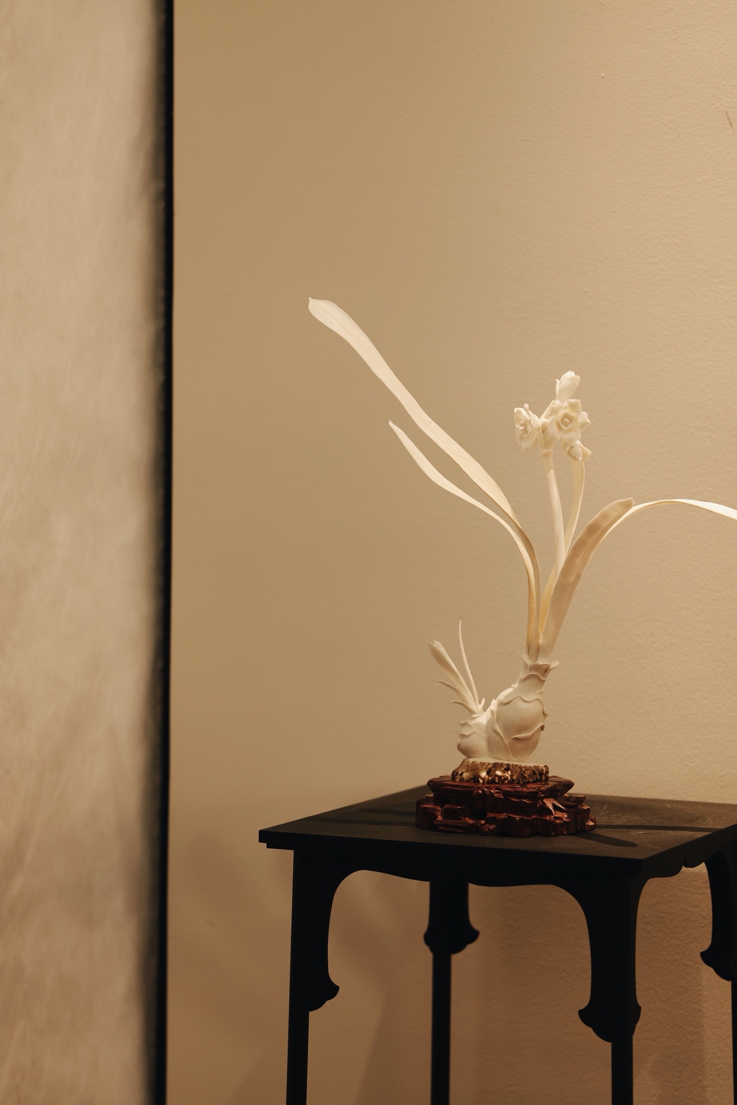 鹿角 | 水仙清韵 摆件雕工简约又不落优雅之态。花叶倾侧,若临风而动,气韵清灵秀