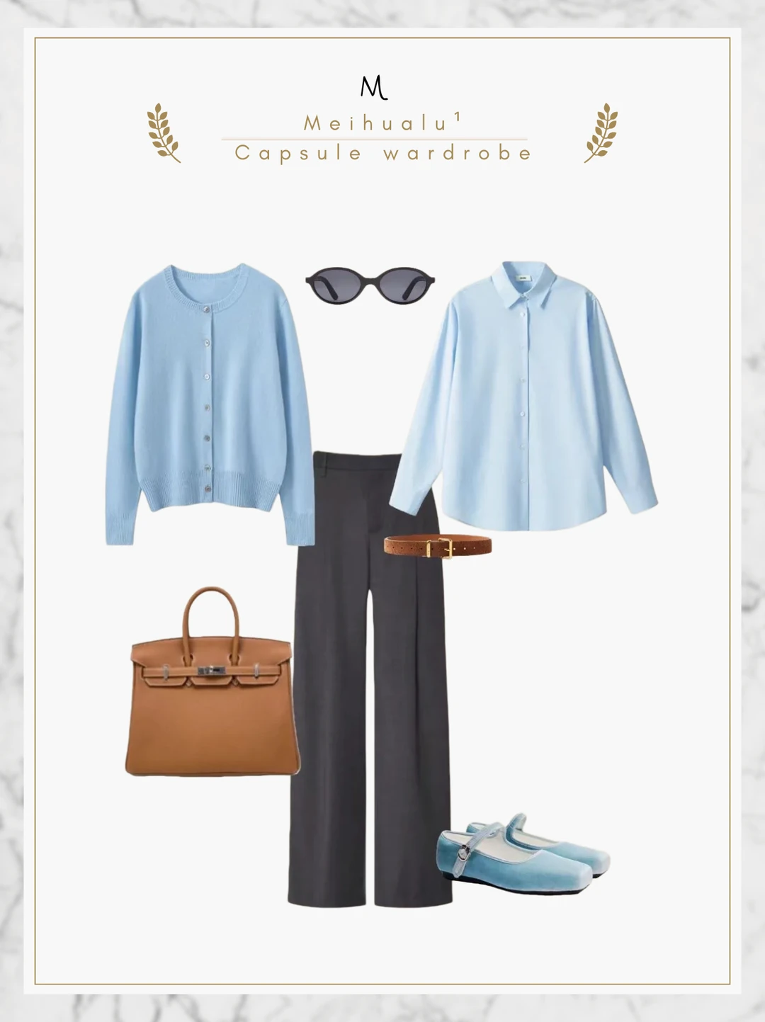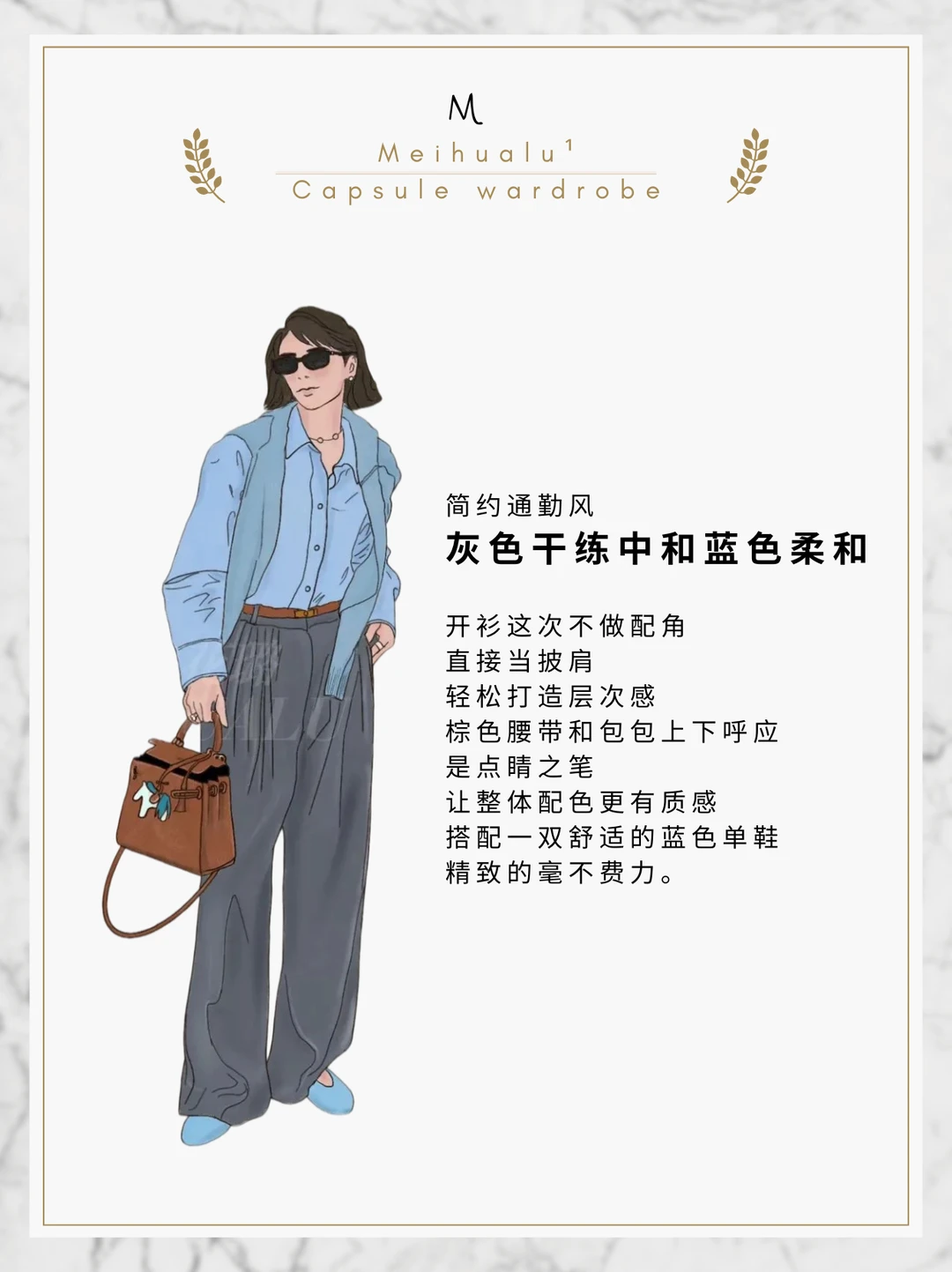 用灰色西裤的干练中和蓝色的柔和,高级感拉满!