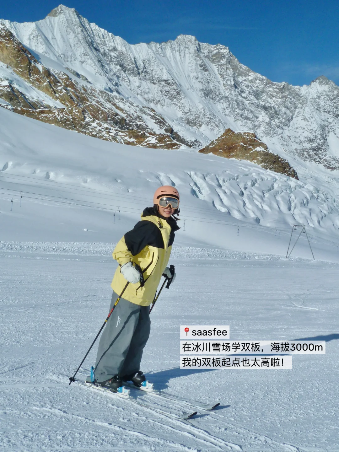 🏂在高山冰川雪场滑雪了;