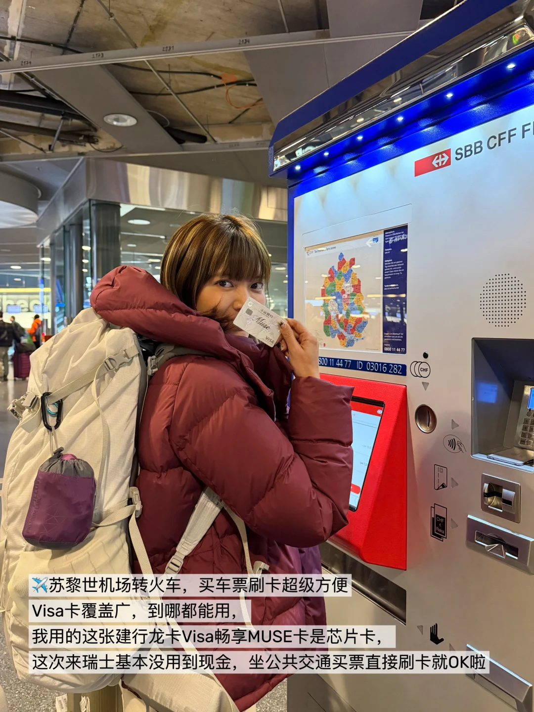 💳作为一个资深 P人,这次来欧洲一点现金都没有换,带着一张建行龙卡Visa畅享MUSE信用卡就出发了。全程买swisspass,坐公交,买滑雪票,逛街买纪念品,吃饭都能一拍即付。免去了随身携带现金的各种麻烦和担忧,可以轻轻松松全身心投入到旅行体验中。境外消费笔笔还有1%返现,每户每月上限200元噢!