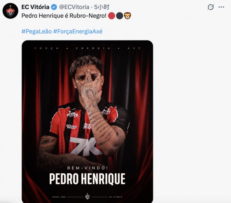 直播吧1月31日讯巴甲球队维多利亚官方消息,正式签下上赛季效力于玉昆的佩德罗·恩里克。