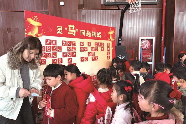 1月22日、23日,嘉兴大学附属第一小学(平湖崇文校区)一、二年级的孩子们迎来了一场别开生面的非纸笔项目化学评活动——“马”上花开,无“笔”快乐!本次活动围绕“马”年生肖主题,分别设计了多个融合学科素养与实践能力的闯关项目:书香马·“语”你同行、智慧马·“数”你最棒、外交马·“英”你不同、科探马·蛛丝马迹、千里马·乐在“骑”中、神笔马·千变万“画”、勤劳马·“劳”以启智、美德马·“德”心应手。