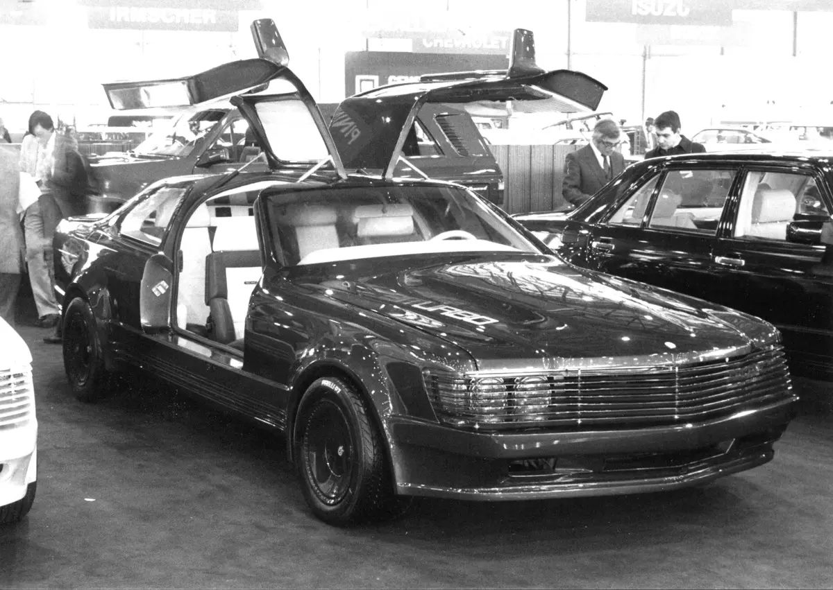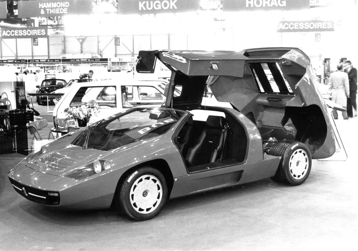 日内瓦车展黑白照片。54th Geneva International Motor Show, 1984.