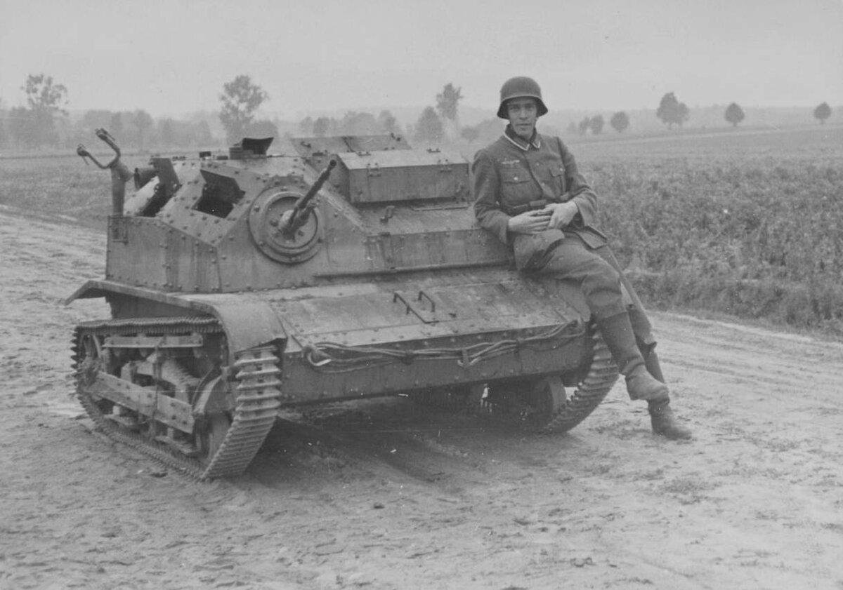 德军早期的“坦克开罐器”——1939 年,波兰战役期间,在公路旁的开阔地带,德军炮兵正操作一门 37 毫米 PaK 35/36 型反坦克炮向波军射击。 PaK 35/36(Panzerabwehrkanone 35/36,参见图2)是德军1935-1940 年的制式轻型反坦克炮,也是波兰战役、法国战役中德军的主力反坦克装备,由莱茵金属研发,专为伴随步兵 / 装甲部队作战设计。 该型火炮口径 37 毫米,炮管长 1.66 米,战斗全重 432 公斤,可由 3-4 名炮兵拖拽或车辆牵引,机动性能极佳,很适合闪电战的快速推进节奏。发射穿甲弹时初速 760 米 / 秒,1939 年可在 500 米内击穿包括波兰在内当时欧洲大部分国家轻型坦克的正面装甲(如波兰主力 7TP 坦克正面装甲仅 20 毫米),是针对轻装甲目标的“坦克开罐器”。当然,后来随着盟军坦克装甲厚度的提升,德军反装甲火炮也就逐渐升级为88mm“反一切炮”了~ 图3为波兰 7TP 轻型坦克,图4为波兰 TK-3 超轻型坦克。