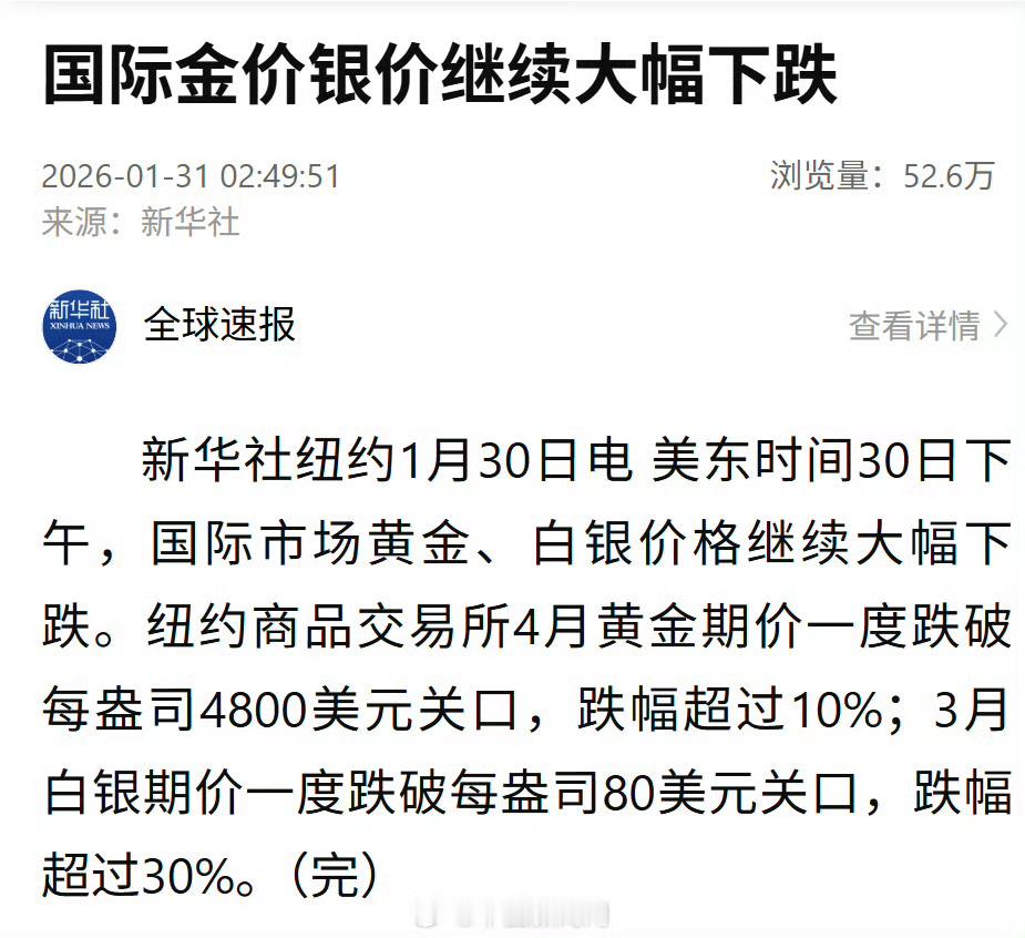 金价史诗级震荡:1月29日-30日,国际金价经历"惊魂夜":现货黄金从5600美