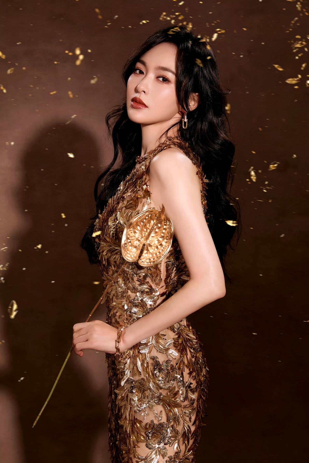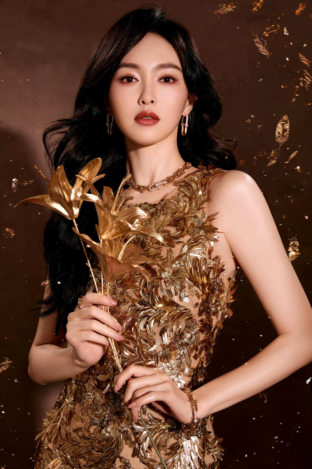 ✨ 唐嫣鎏金大片,美到发光! 一袭鎏金羽毛裙勾勒出完美曲线,复古大波浪卷发配红唇,在暖调光影里绽放出明艳又优雅的魅力。 每一张都像从旧时光里走出的鎏金玫瑰,既有港风美人的氛围感,又不失当代女性的飒爽气场,这状态真的绝了!💃