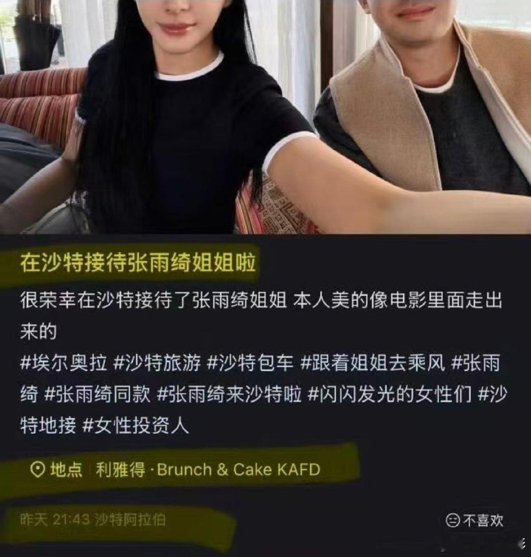 压力给到张雨绮了压力给到张雨绮 博主称在迪拜接待了张雨绮、什么时候回应一下