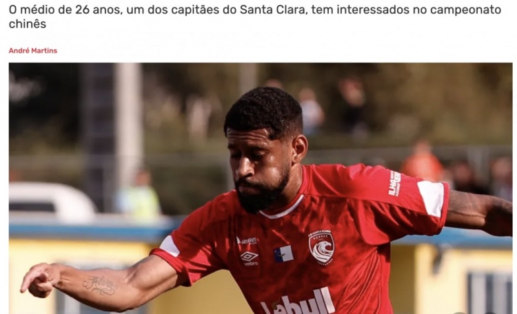 直播吧1月31日讯据葡萄牙媒体《纪录报》报道,葡超圣克拉拉可能将失去中场关键一员:巴西球员阿德里亚诺·菲尔米诺(AdrianoFirmino)已吸引中超俱乐部关注,其离队可能在未来几天内成为现实。