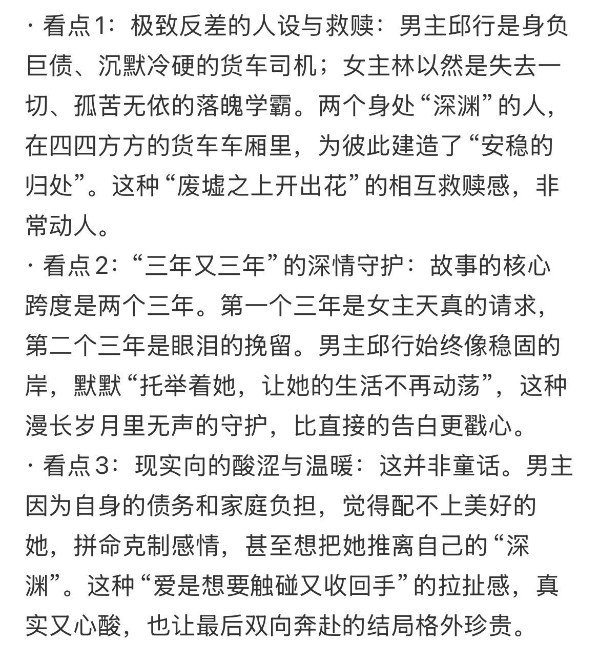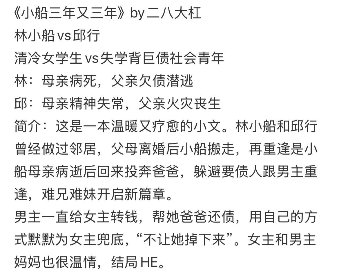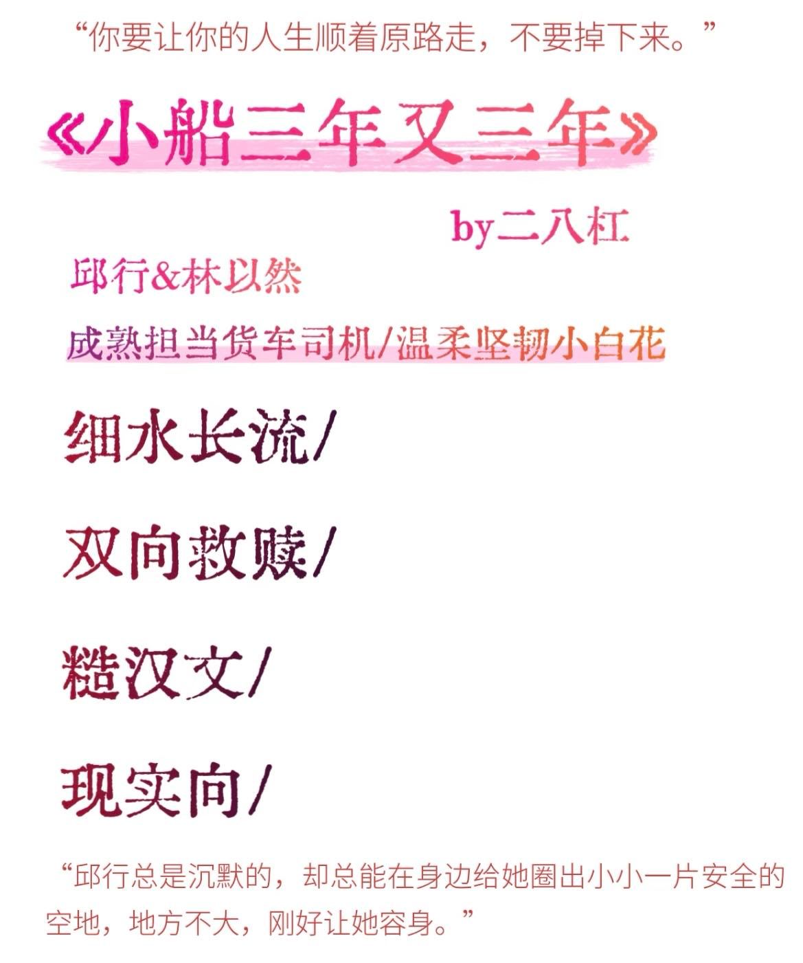 晋江救赎文TOP要被拍剧了!?喔莫,救赎文脑袋狂喜,《小船三年又三年》真的是我最期待影视化的作品之一,wuli晋江酸涩救赎文赛道top,编剧还是最权威的欧思嘉,就问谁不喜欢《偷偷藏不住》和《爱你》啊!?设定也是我最心水的两个小苦瓜,落难学霸与天才少女的救赎双旋,跨越时间,他上演“我托举你重返光明,你拉扯我走出泥泞”的双向救赎。还是货车叙事空间,拥有乌托邦感公路尽头的禁忌浪漫!!启蒙制作的话我感觉会大事很妙,现在就看选角了,两个泥泞里互相挣扎着扶起对方的天之骄子我真的爱看!!谁会演我心目中的邱行和林以然啊!!!