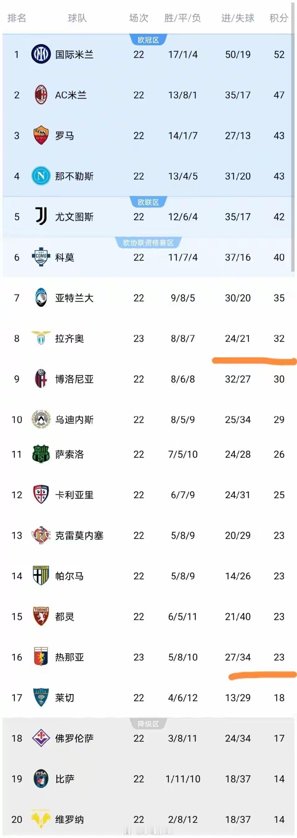 此役拉齐奥积32分逼近欧战区,热那亚23分仍居第16,其新年5轮不败纪录终结,国米依旧领跑意甲积分榜。