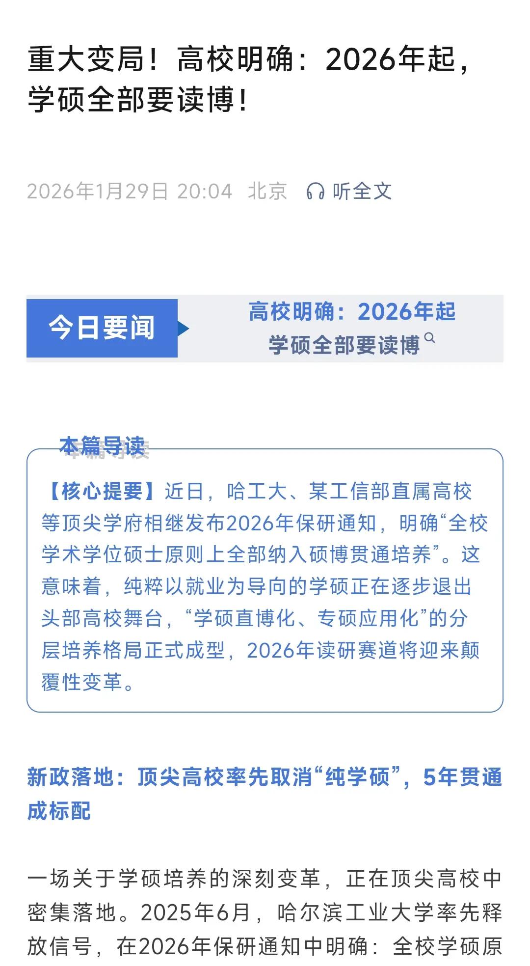 2026年起,哈工大、某工信部直属高校硕士全部要读博!