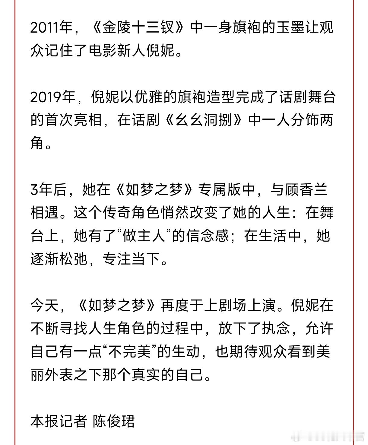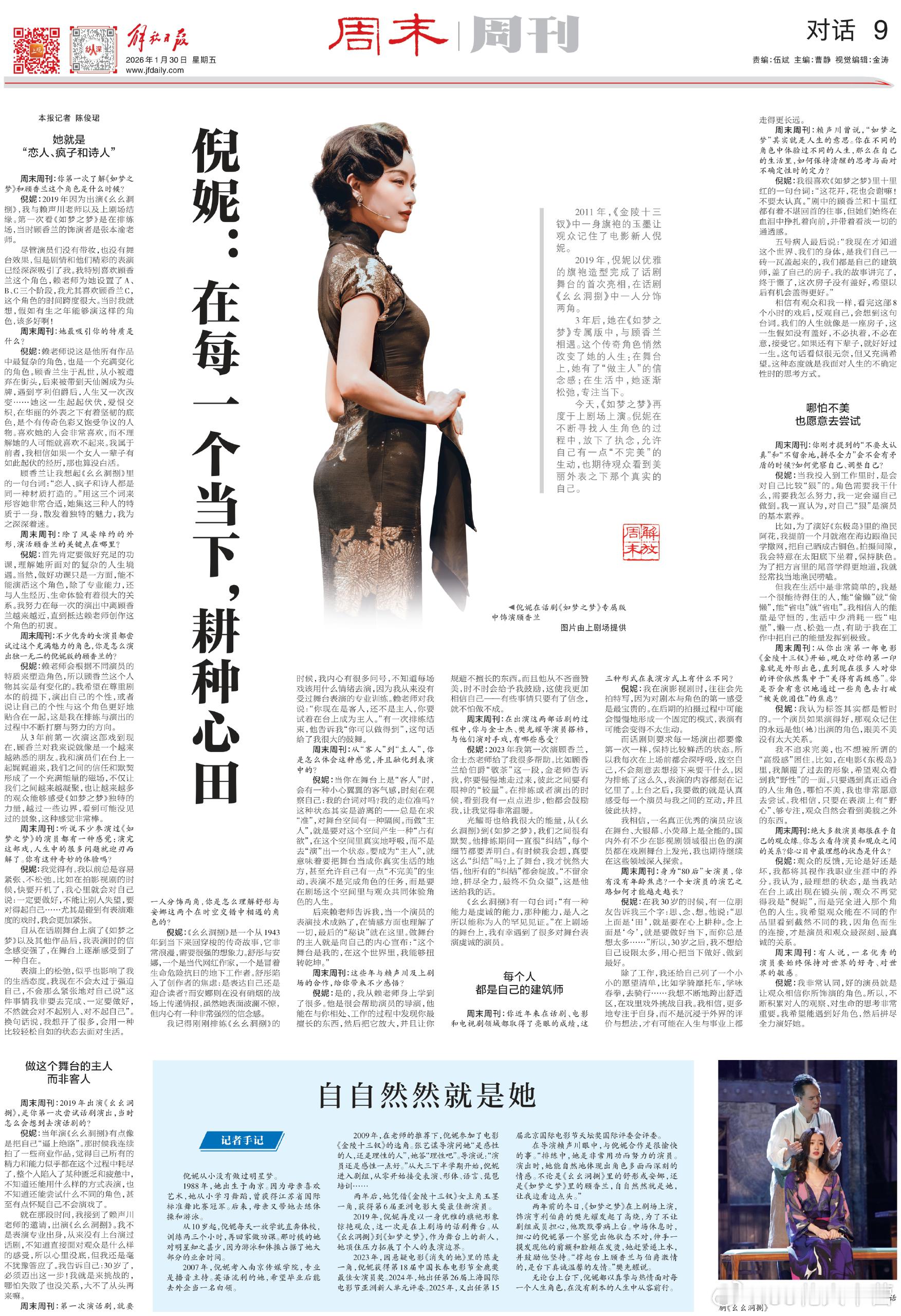 〈解放日报〉整版报道——演员倪妮个人专访!《如梦之梦》倪妮:在每一个当下,耕种心