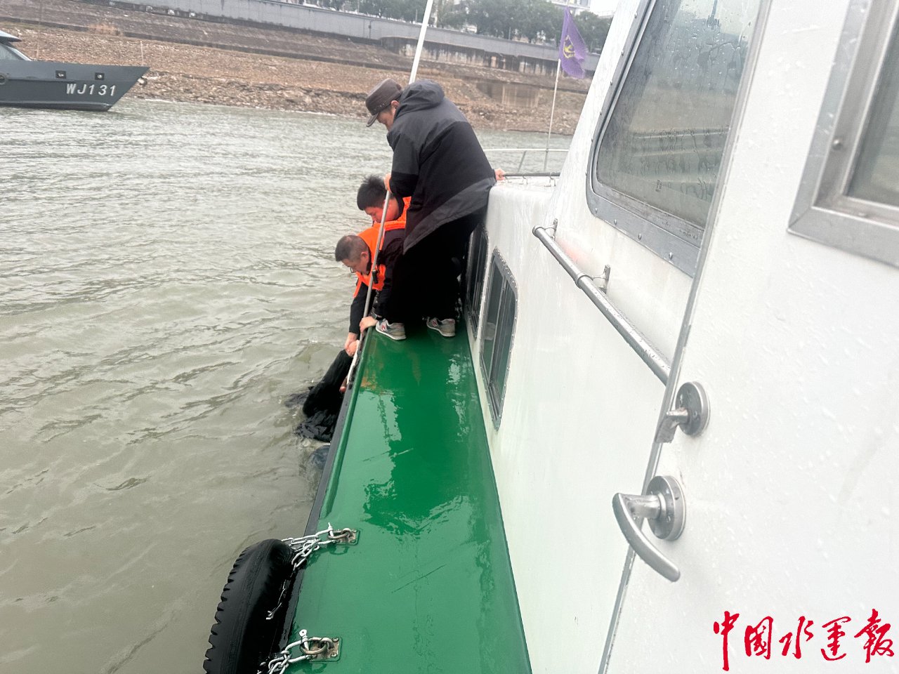 “准备救援,注意规避螺旋桨!”丁队立即下达指令。执法人员迅速操起救生杆,小心翼翼调整艇位,确保救援动作不引发二次伤害。救生杆精准递至女子身前,众人默契配合、合力发力。江风刺骨,江水如冰,冻得执法人员手脚僵硬,指尖几乎失去知觉,但他们咬紧牙关、丝毫不敢松懈,直至成功将落水女子安全转移至艇上。“快,拿毯子来!”执法人员立刻取来应急保暖毯,迅速为女子裹身保暖,此时她浑身剧烈颤抖,意识仍显模糊,情况不容乐观,丁队全程守在女子身边,密切观察其生命体征,不停轻声安抚稳定情绪。