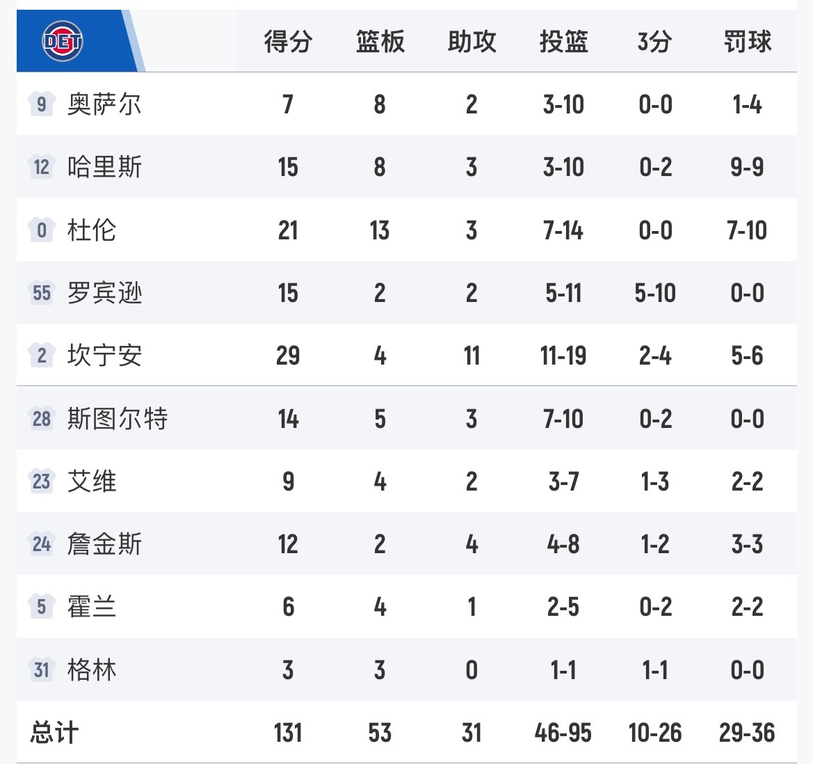 勇士顽强抵抗,也就输了7分。 活塞vs勇士