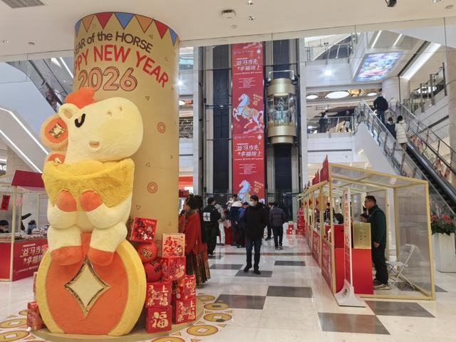 春节前夕,闵行区梅陇镇街头巷尾张灯结彩,洋溢着浓郁的年味。百联南方购物中心内人流如织,“益”马当先幸福陇上——闵行区“我们的节日・春节”主题示范活动今天举行,标志着闵行区“春申美好生活迎新季”拉开帷幕。