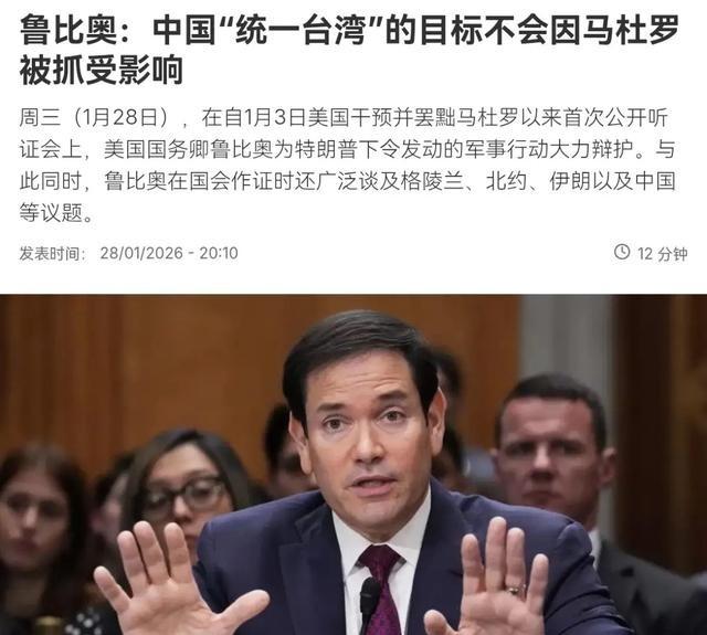 罕见!美国在台湾问题上重大转向,鲁比奥暗示台湾问题就是中国的内政问题!1月29日,根据法新社报道,美国国务卿鲁比奥表示,中国提出的“统一台湾”目标不会受到其他国际事件的影响,包括此次针对马杜罗的行动。台湾问题是一个历史遗留项目,中国已经非常明确地表明了他的意图,而这与世界上发生的其他事情无关。 1月29日国会外交关系委员会听证会聚焦美国外交行动。鲁比奥出席回应议员关于委内瑞拉干预的关切。该行动1月3日执行,美国海军拦截船只,特种部队突袭目标,将马杜罗及其妻子带至纽约面对毒品和武器指控。民主党议员担忧此举可能为中国提供台湾统一先例。 鲁比奥回应称中国对台湾统一是领导人长期目标,通过公开声明表达,不会受外部事件左右。委内瑞拉行动针对当地危机,与台湾无关。他将台湾描述为历史遗留事项,与全球其他事务脱钩。美国情报监控中国军方反腐,如更换将领,但这些不改变台湾策略。 听证会中鲁比奥指出美国优先本土和西半球安全,资源向北美转移。要处理全球事务需与中国某些领域合作,未详述形式。这一表态打破以往捆绑台湾与区域冲突的模式,反映美国实力评估。对日本等盟友发出信号,避免直接对抗。 共和党议员支持委内瑞拉行动为打击毒品必要。民主党担忧中美摩擦加剧。鲁比奥重申反对武力改变现状,与1970年代政策一致。台湾半导体角色关键,美国维持军事平衡,通过军售如火箭系统和导弹提升台湾能力,总额110亿美元。 听证会历时三小时,鲁比奥表态视为务实转向。虽未明言台湾为中国内政,但承认历史性质与其他事件无关。挑战外部势力捆绑做法。背后美国认知自身战略,中方维护主权结果。同时警示不愿为他人冒险。但美国对台政策仍有投机,坚持一中原则方能和平。