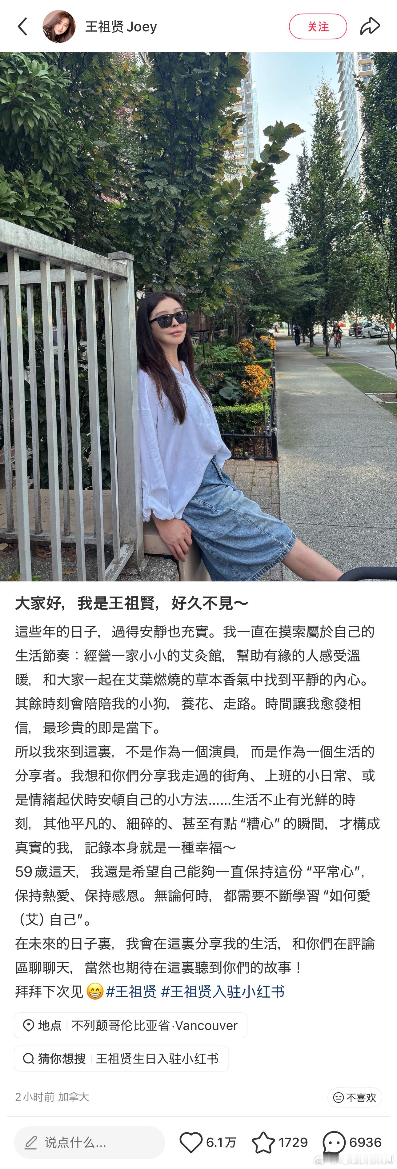 王祖贤在59岁生日当天开通🍠,至此快抖薯三平台都有她的实名账号了,微博想跟上建