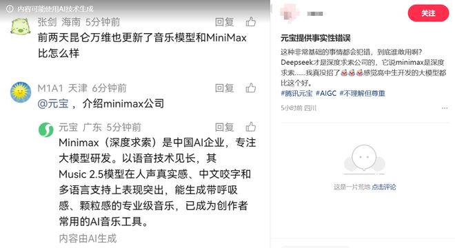 还有不少网友反馈了元宝在回答中出现事实性信息错误的问题。