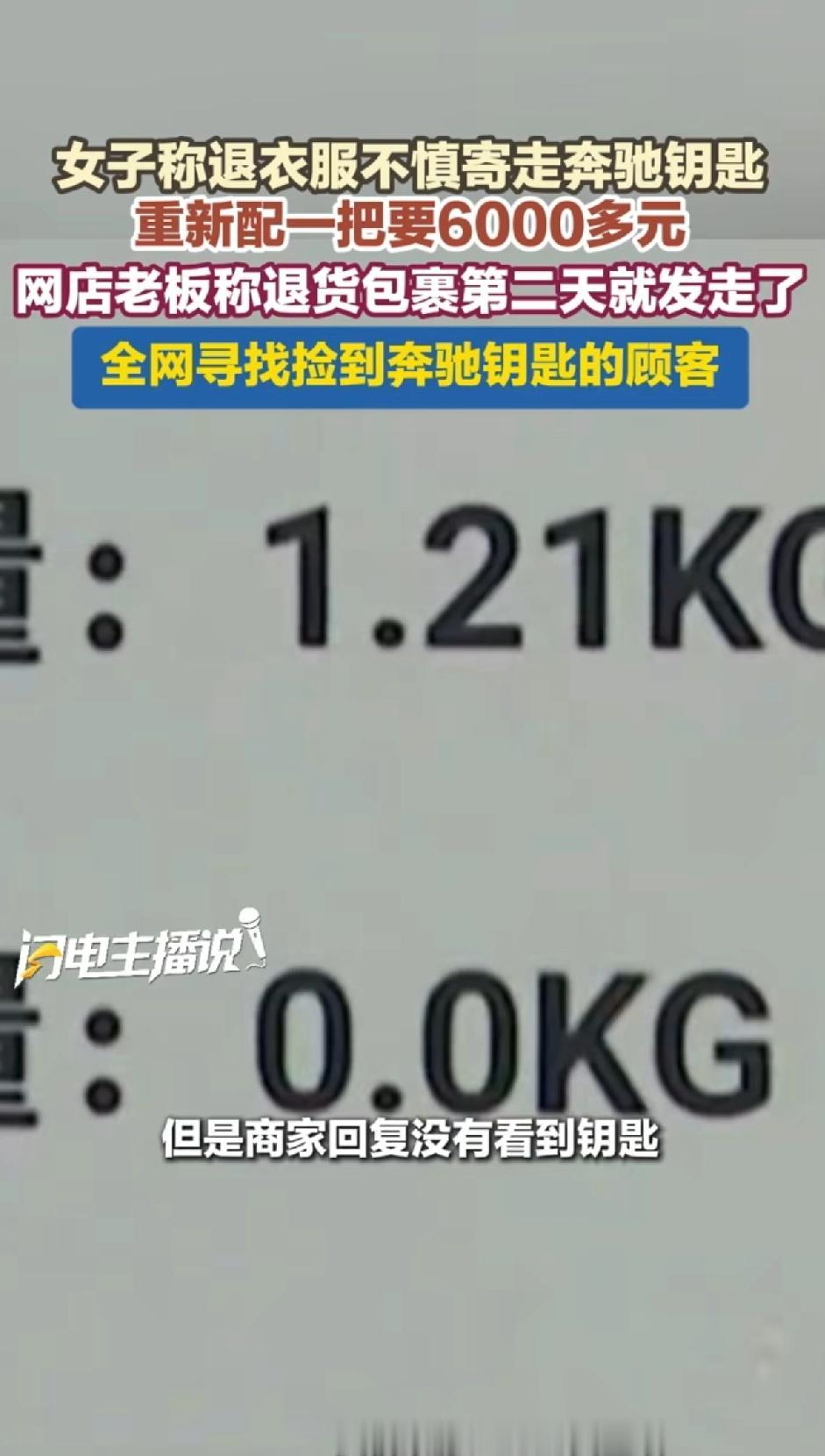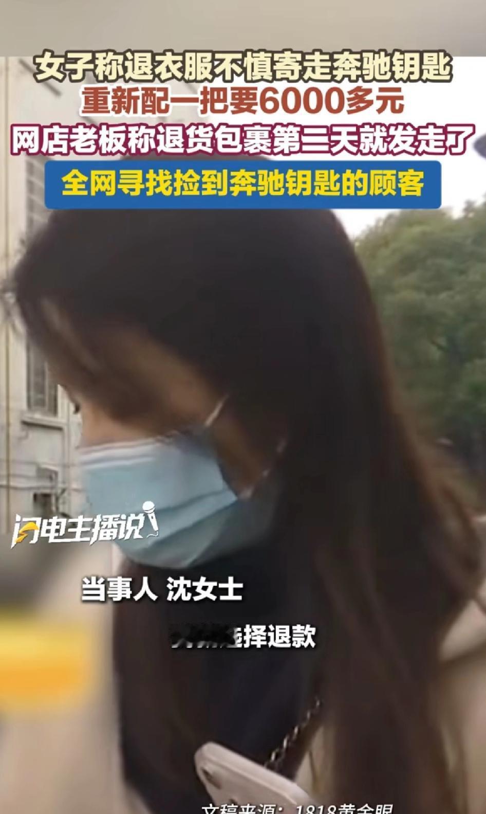 女子称退衣服不慎寄走奔驰钥匙,重新配一把要6000元,网店老板称退货包裹第二天就