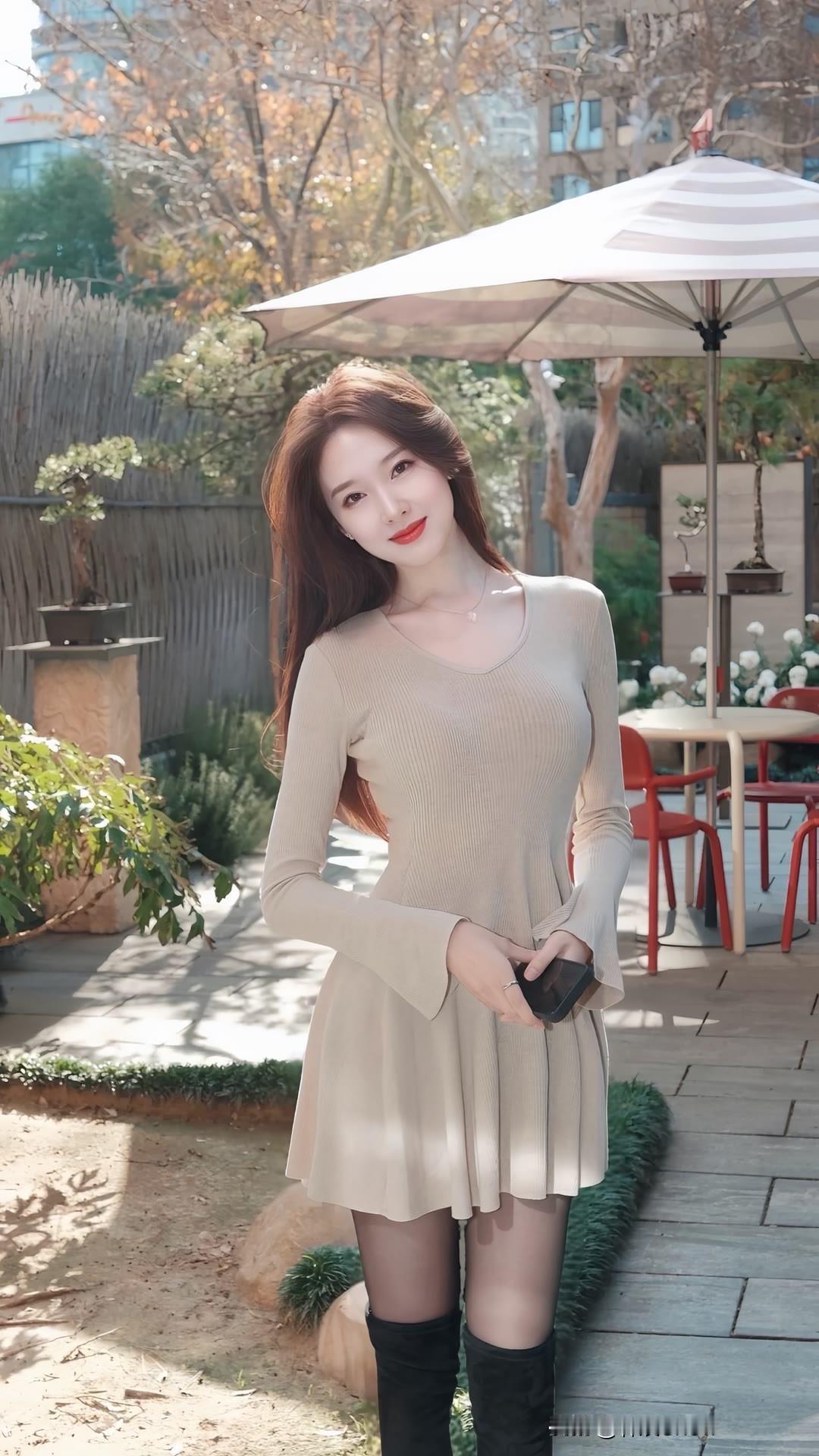 秋日穿搭指南:米色连衣裙+黑色长靴,优雅又时尚!🍂👗👢