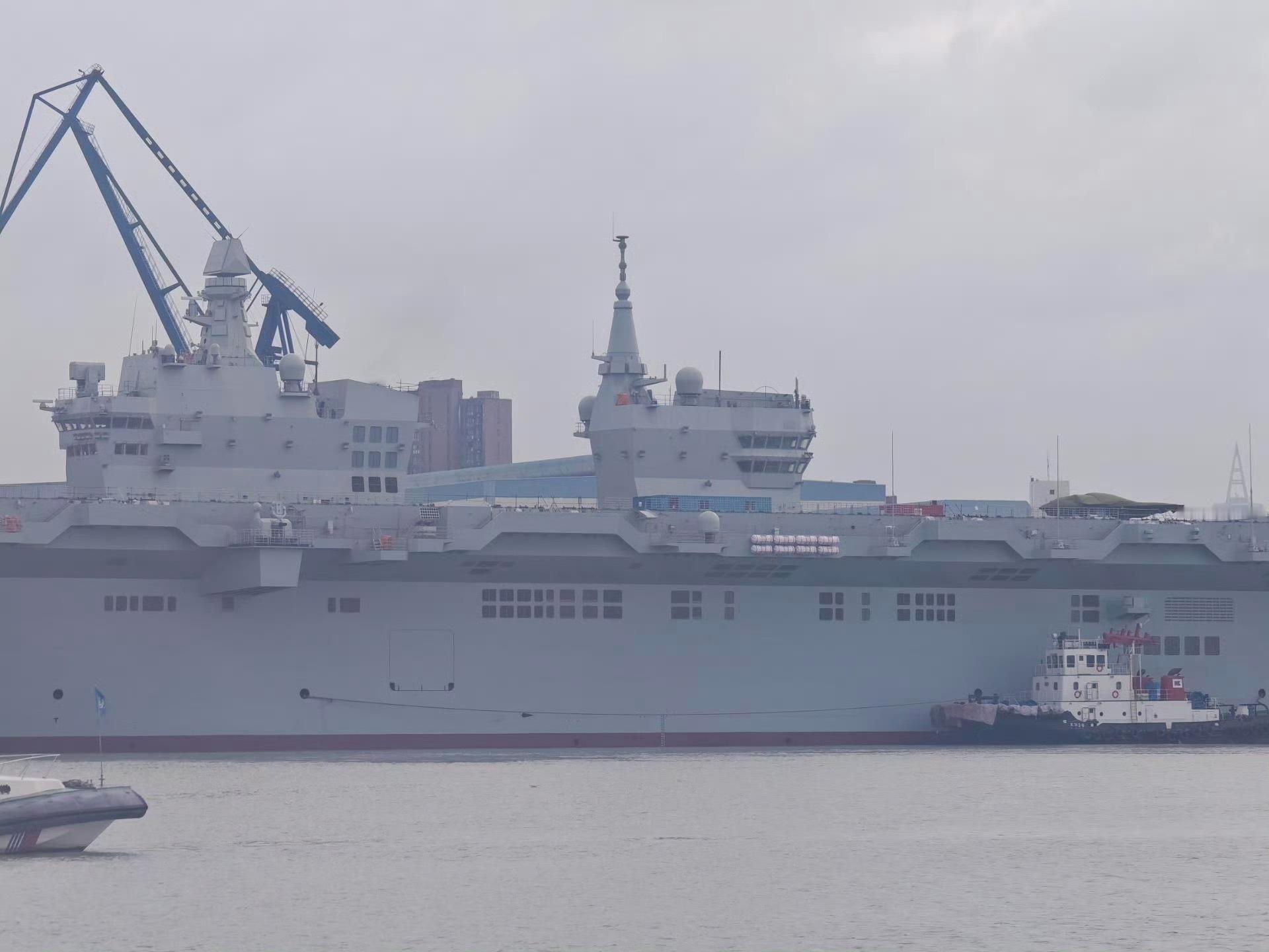 今日网络大量图片显示四川舰(51)出坞与海南舰同框,甲板被发现有无人机模型,甲板也已画线,无人机“母舰”实锤。