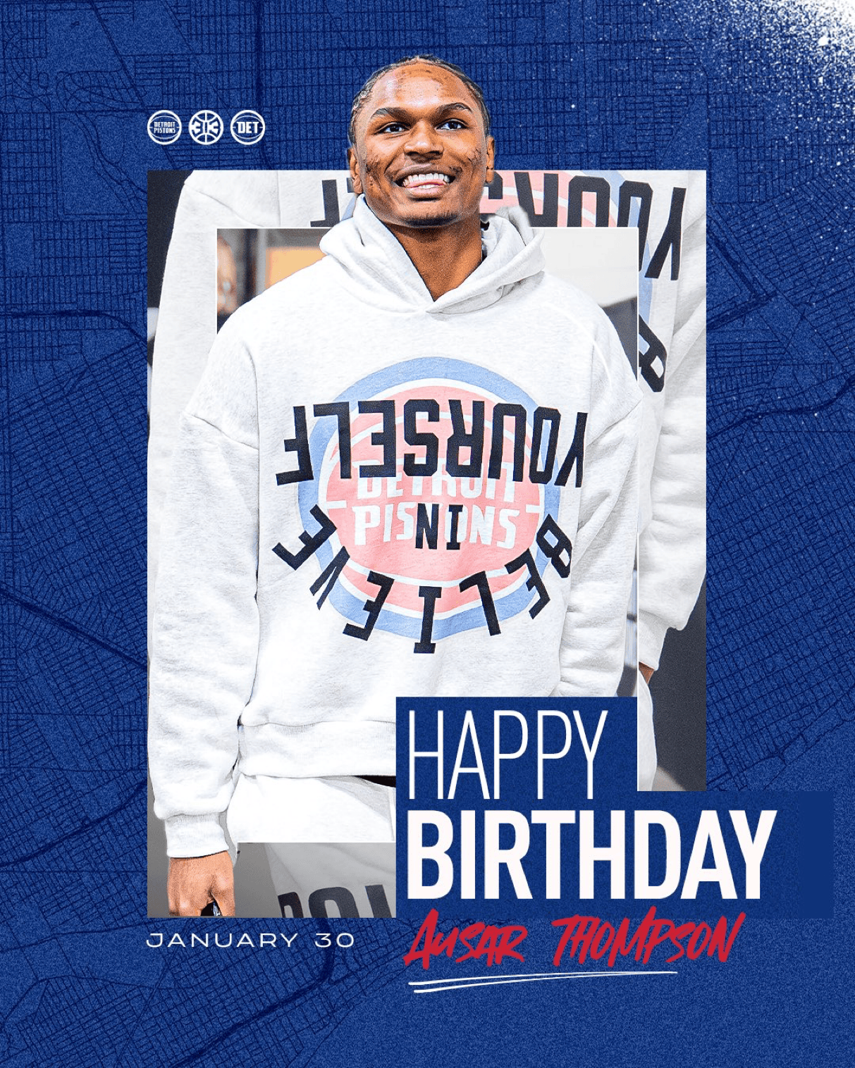 23岁生日快乐!活塞官媒晒奥萨尔-汤普森海报照庆生