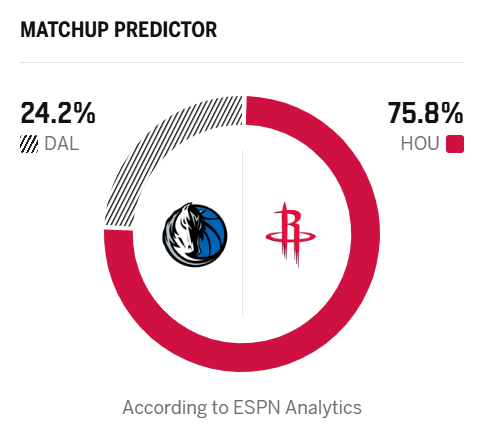 ESPN预测明日比赛:火箭胜率75.8%,独行侠胜率24.2%