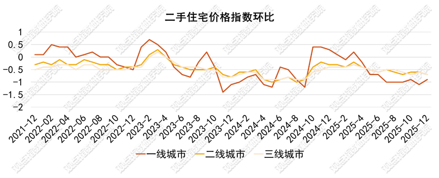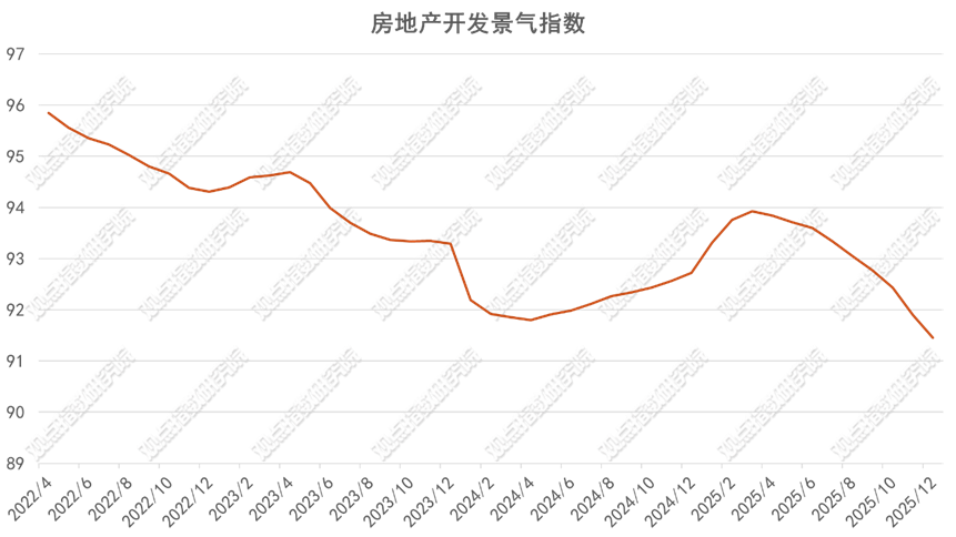 12月房地产开发景气指数为91.45,市场仍处于弱景气区间,表明行业尚未完全走出调整期。不过,结合一线城市房价环比降幅收窄、上海房价双涨、年末销售翘尾等信号,市场呈现“弱中有稳”的特征:一线城市作为政策敏感区域,其需求端观望情绪的消解可能逐步传导至二三线城市,但城市间分化仍将持续。