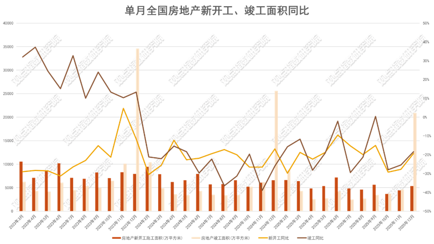 2025年1—12月份,房地产开发投资及供给端指标延续承压态势,在开发投资方面,全国房地产开发投资额累计达到82788亿元,其中,住宅投资完成63514亿元。