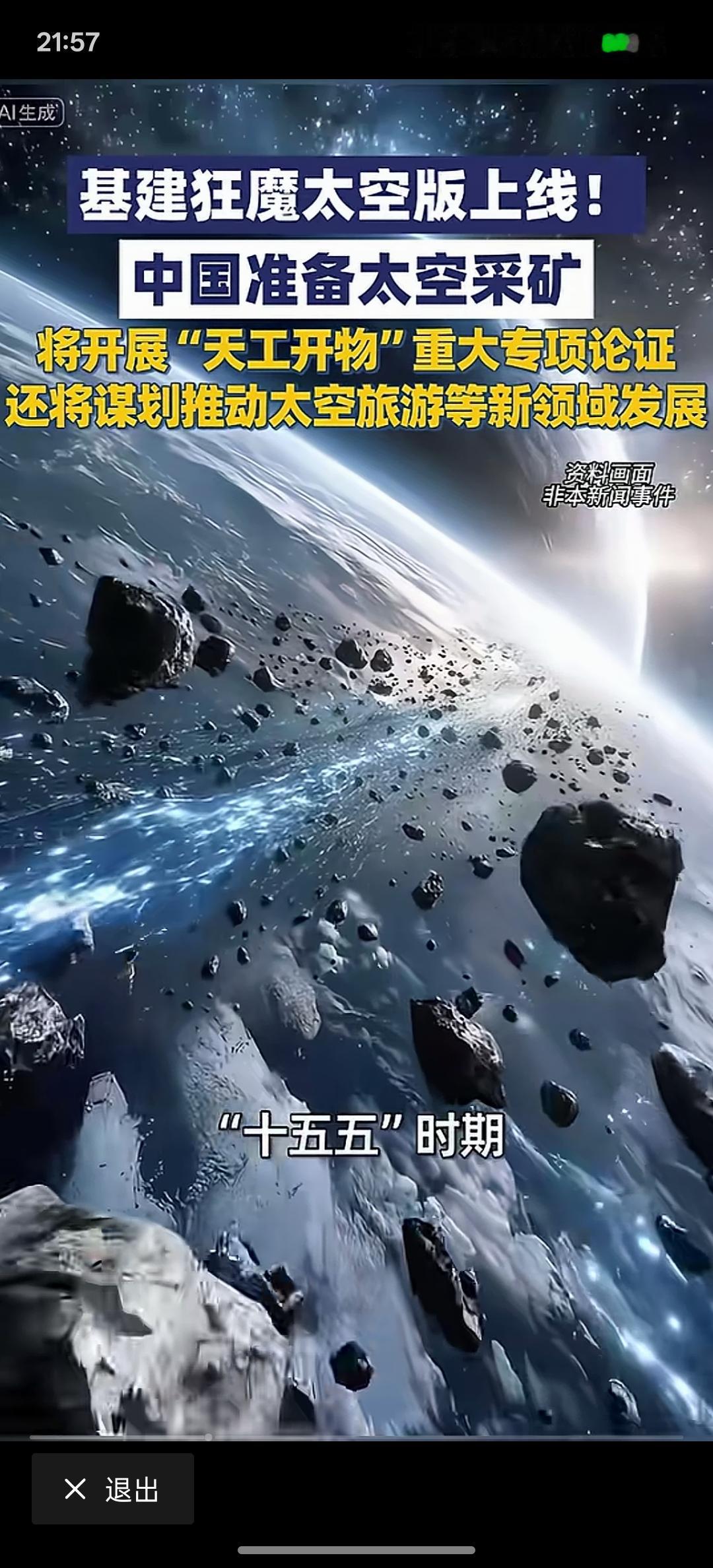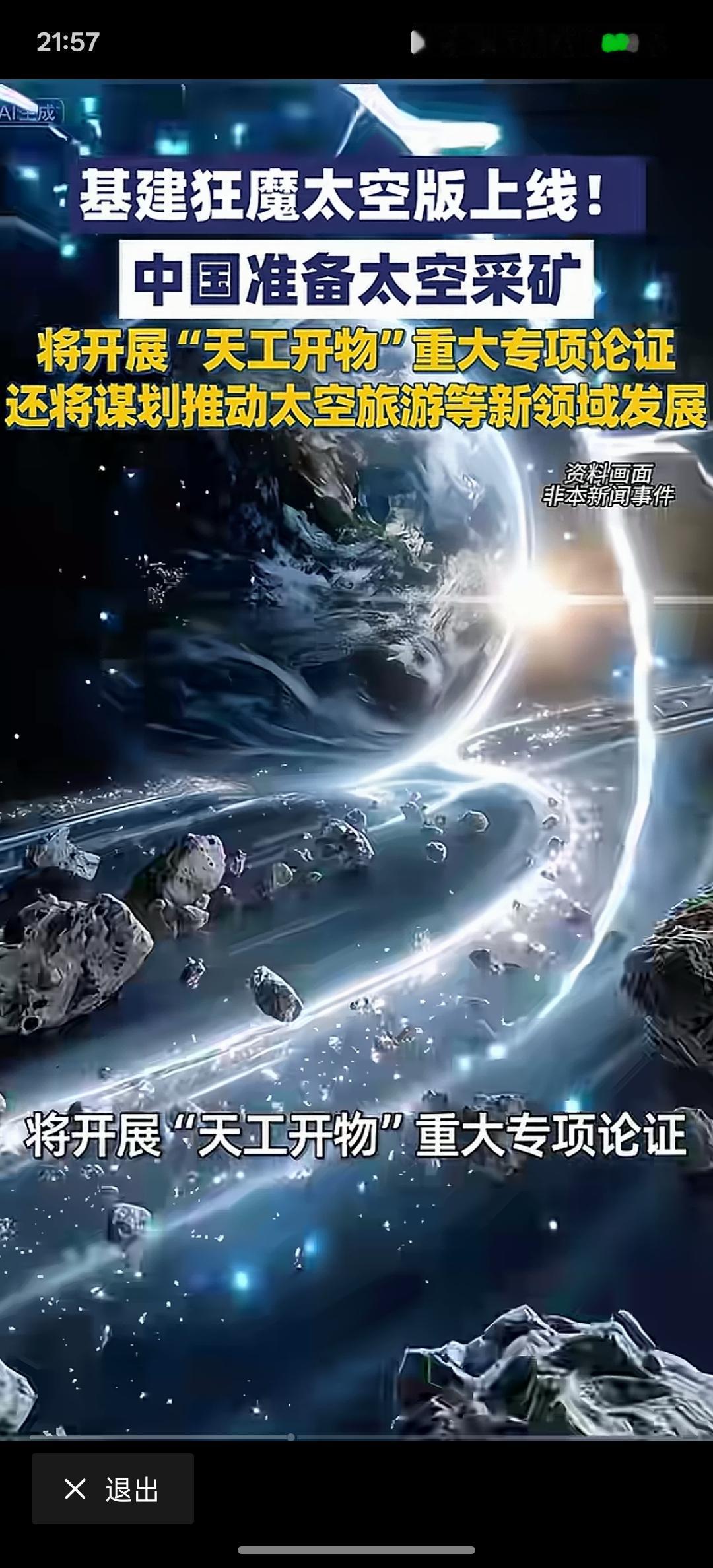 下周继续看科技涨,马斯克被曝筹划推进太空算力,我们国内同样也在大力发展太空算力,我们将在太空开采采矿,尤其是智能化的采矿。 据中国未来的规划,大力发展太空,太空经济将会成为中国新的经济增长点,而且太空算力也将带来更多的算力行业的发展!要根据现在中国的规划,未来在算力,芯片以及航天航空的芯片行业都会实现国产替代! 太空旅游,太空经济都将成为未来中国经济增长重要引擎!