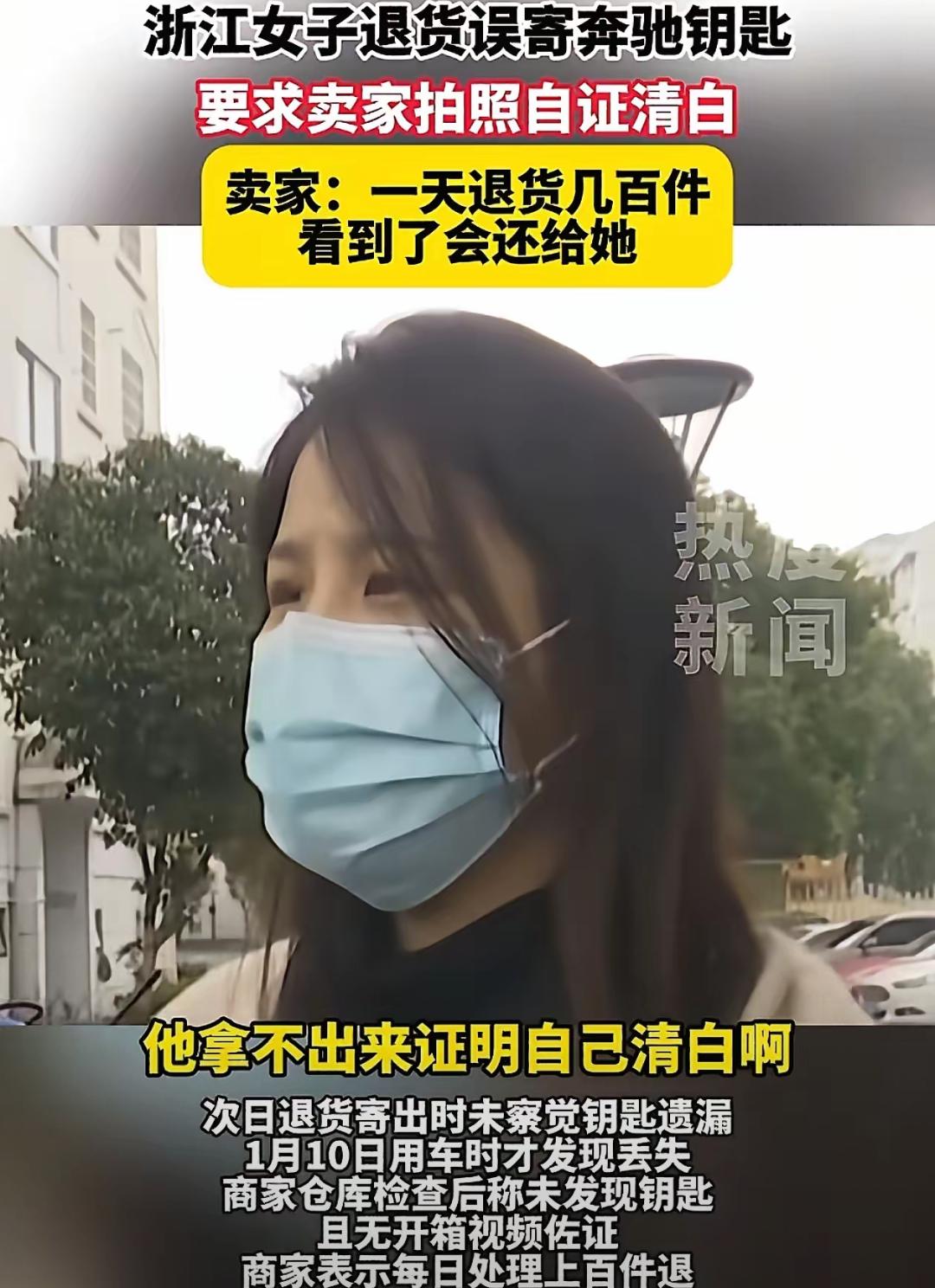 这女子退货闹的 明明钥匙自己忘的 偏要商家来找 商家仓库没监控 每天退货几百件 找起来实在难 她开奔驰不缺钱 却发视频讨说法 现在网上风气怪 谁拍视频谁占理 退货前该检查好 省得事后纠缠 商家也该装监控 避免类似纠纷 各退一步想想 责任分清了 日子才过得顺