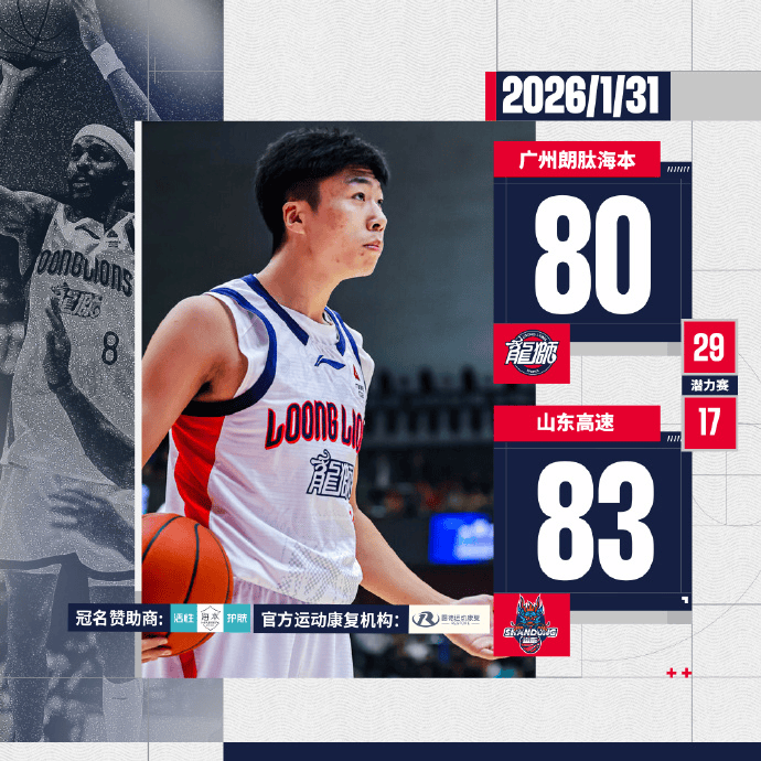 虎扑01月31日讯CBA常规赛,山东83-80战胜广州。