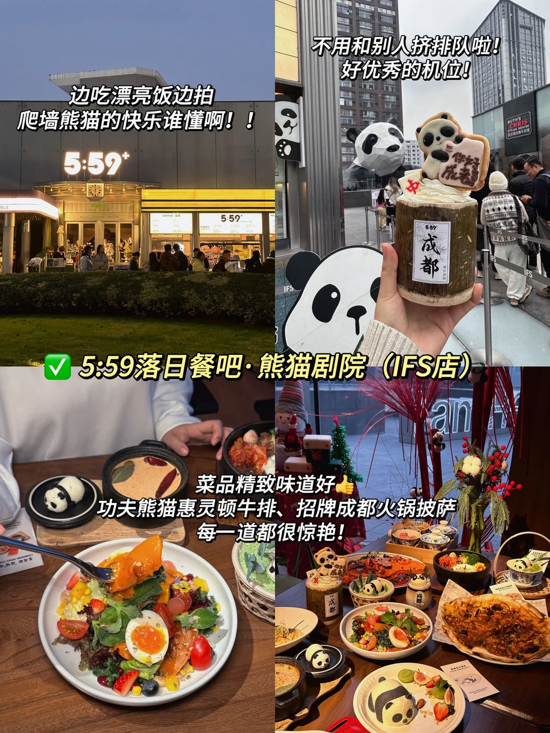 🫘成都西餐:5:59落日餐吧·熊猫剧院(IFS店)的机位是真牛啊!不用排队就能拍爬墙熊猫