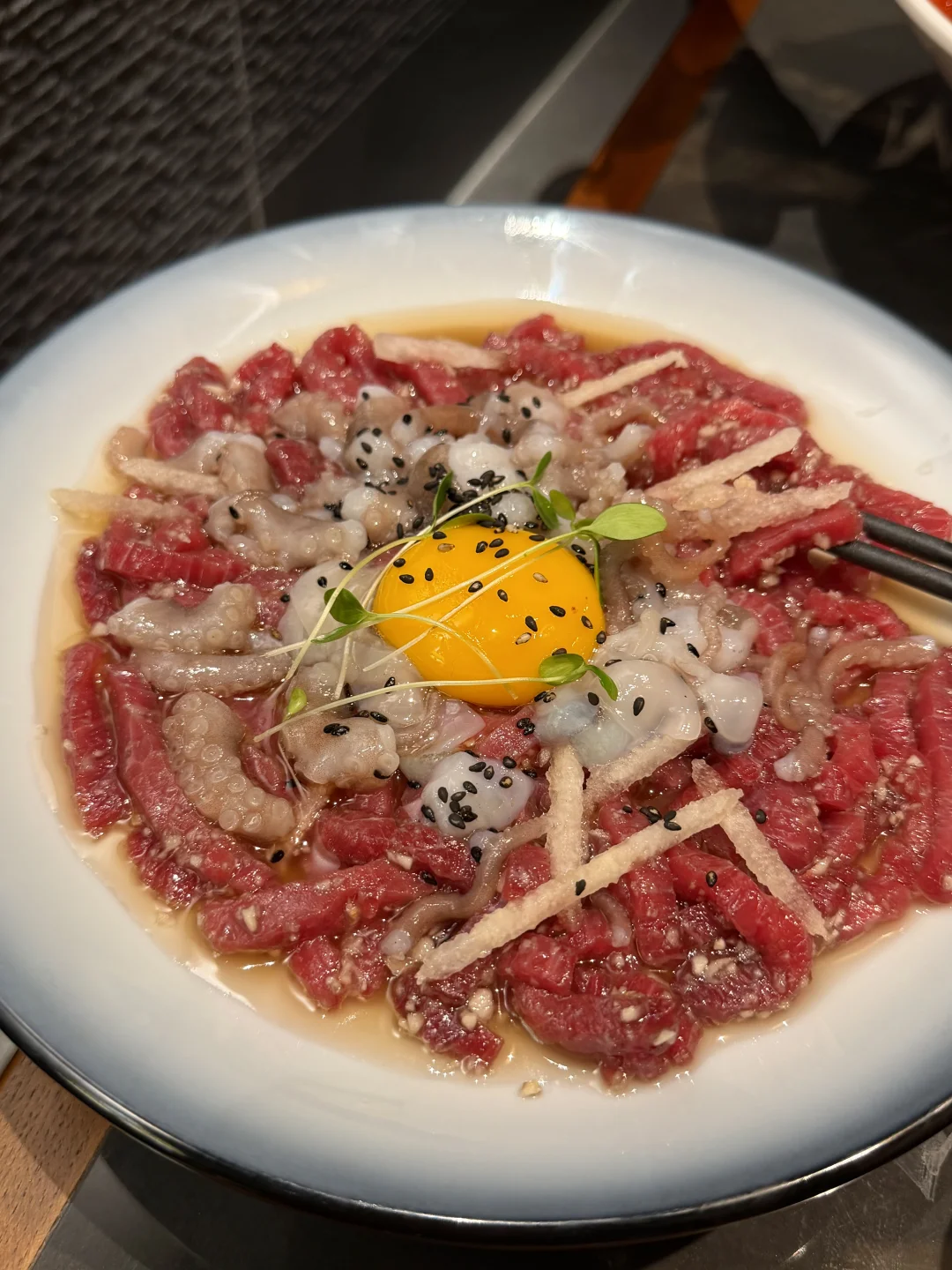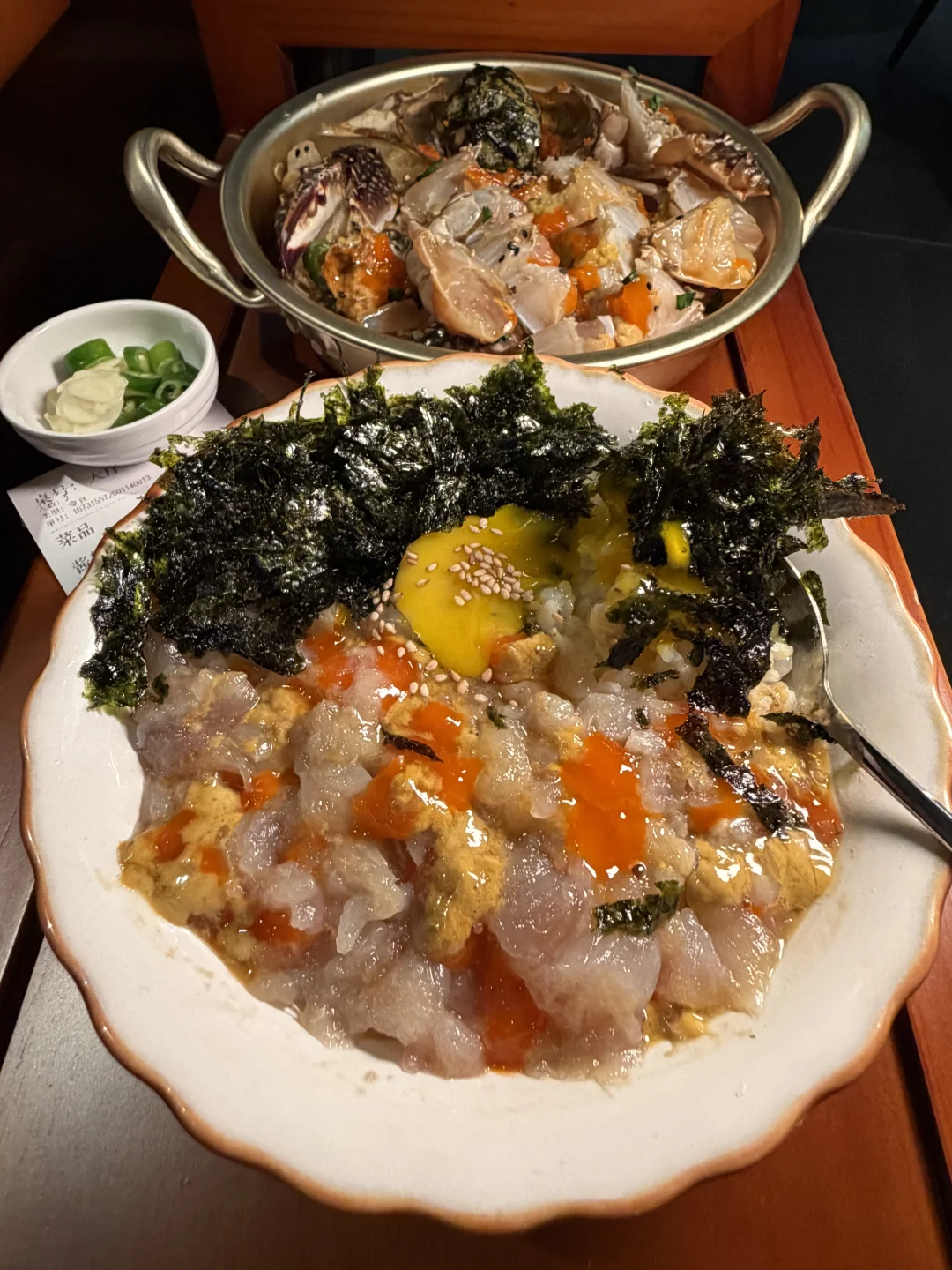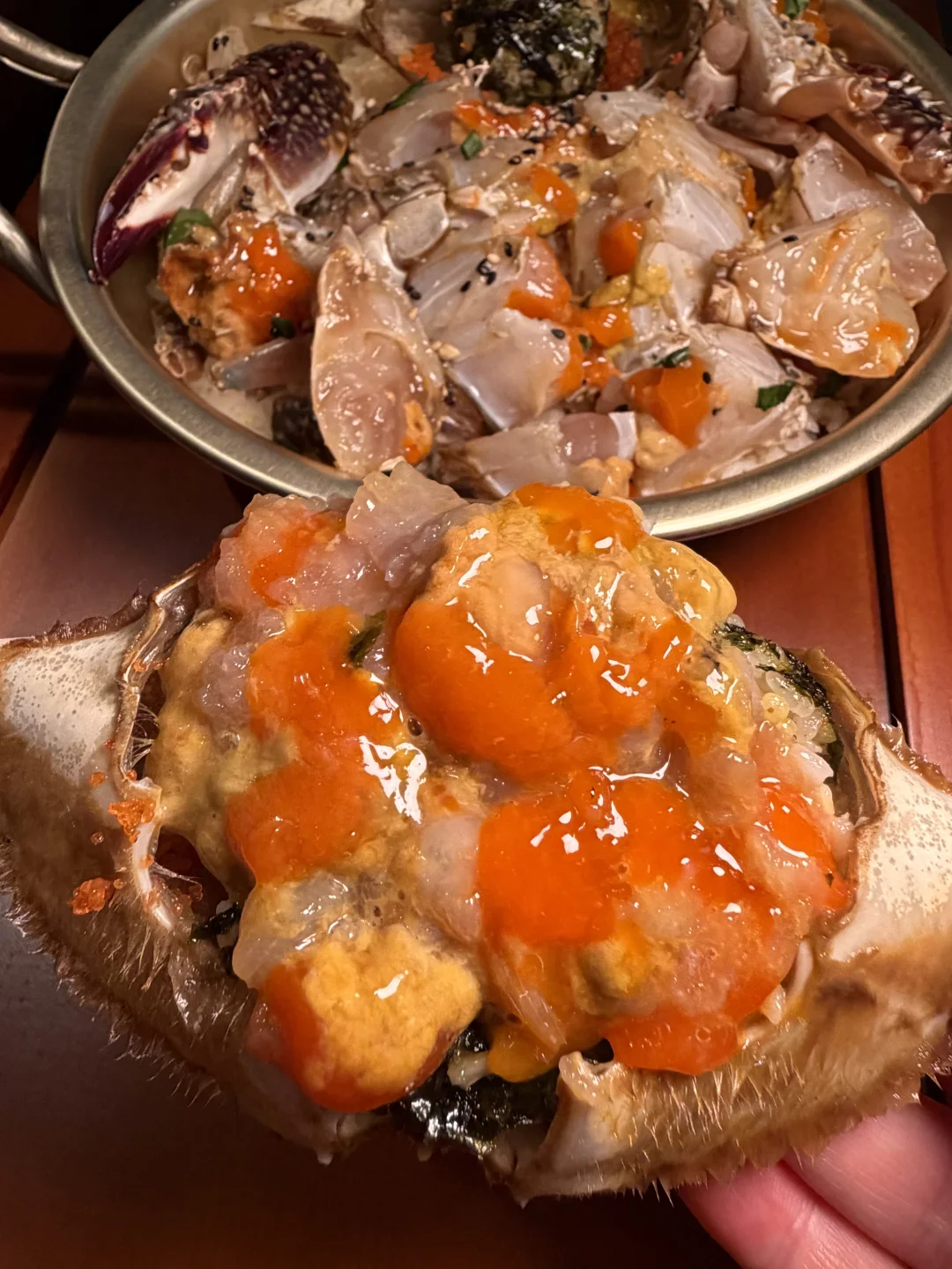 上海,终于吃上了酱蟹糊拌饭! 还有心心念念的整只辣鱿鱼海鲜面!! 烤肉是韩国小哥哥亲自帮烤!还会和客人互动