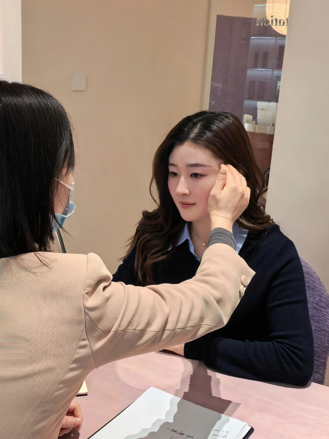 按摩师先会对颈部和脸部进行按摩,加上热敷太舒服