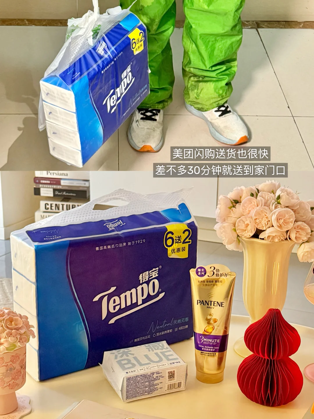 收拾家里时,发现纸巾、姨妈巾这些日常消耗品都需要补货了!大冬天的又不想裹着厚外套去超市排队,还要拎着沉甸甸的购物袋,想想都觉得累~ 还好我平时习惯在美团闪购上买日用品零食等,省时又省力!