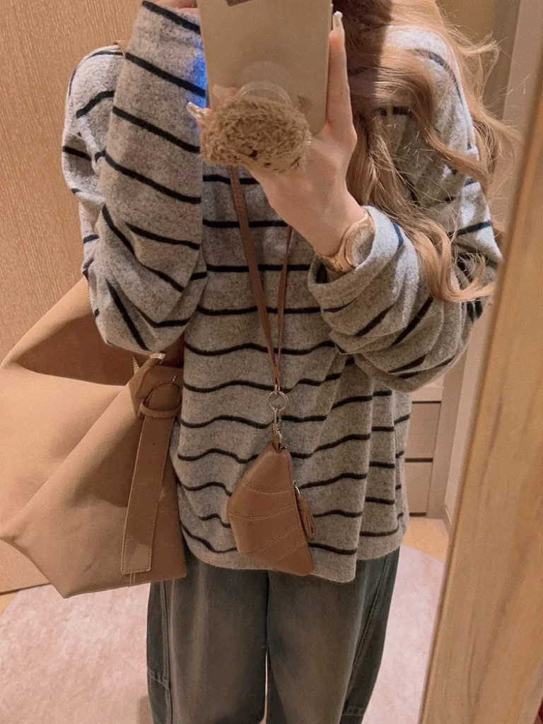棉质软糯到像第二层皮肤~ 贴身不扎还保暖,单穿叠穿都好看! 条纹设计简约不单调,搭西装外套绝配✨ 品质在线,洗了好几次都没起球~