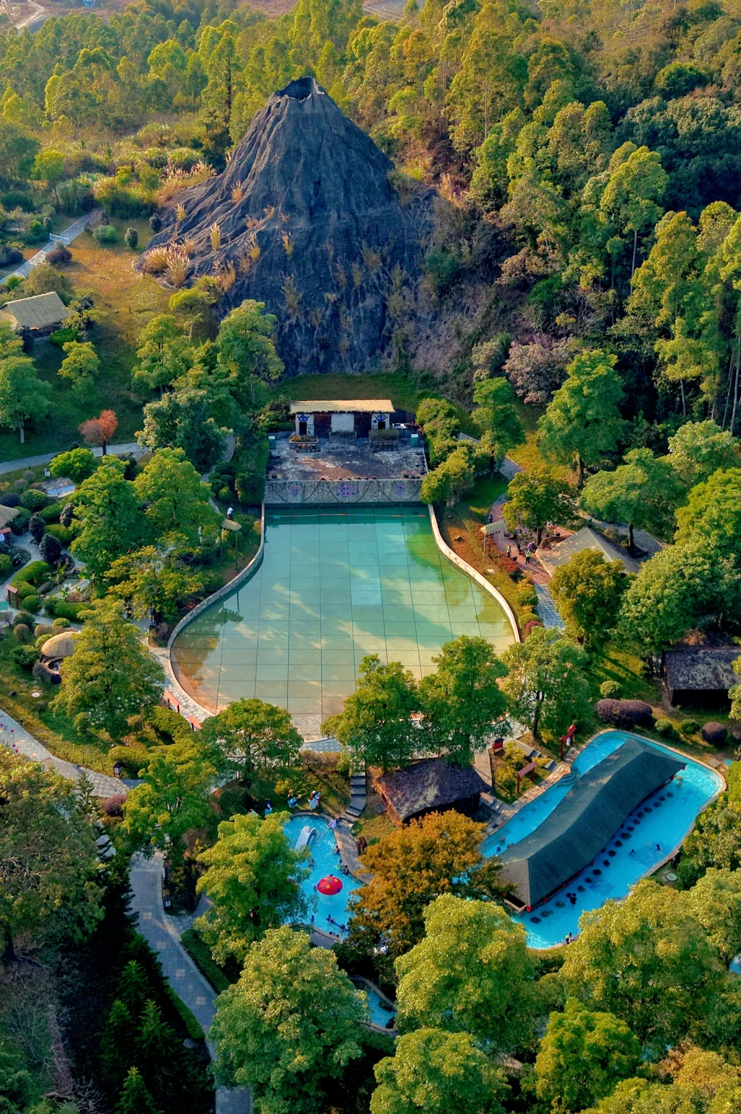 藏在山林间的火山温泉,特色泡池散落其间,竹篱小径走入温泉,私密泡池很是不错