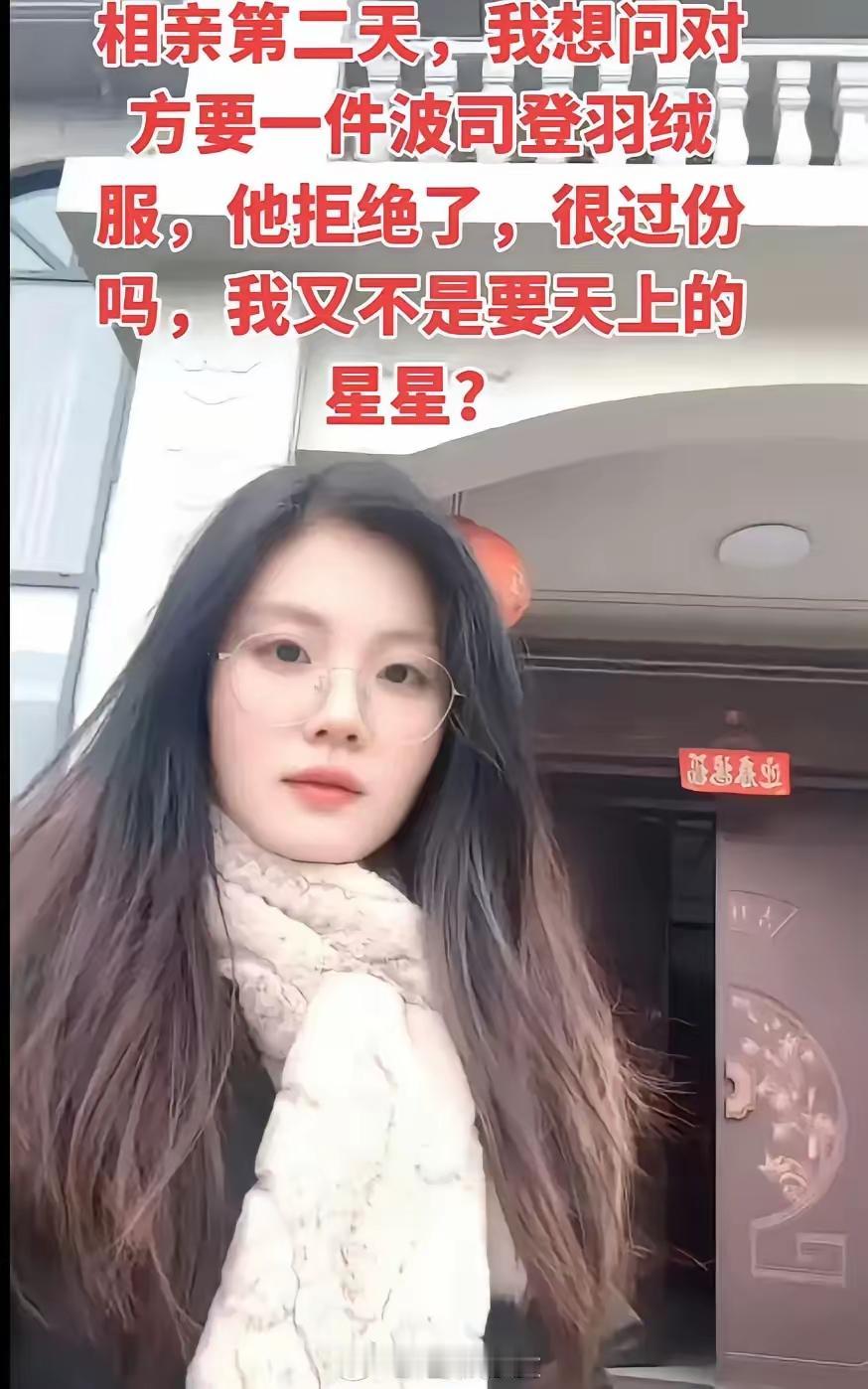 相亲第二天就向男友要羽绒服,男友带着她去某羽绒服品牌店,她挑选了一件两千多元的羽绒服,男友立马就黑下脸,男友付款后立即把她拉黑了,她也不示弱立刻就把羽绒服退了,钱还给男友,两个人不处了,这样的情况到底是谁对谁错?我觉得女人不能刚相亲第二天就开始要礼物,有点太物质了吧。
