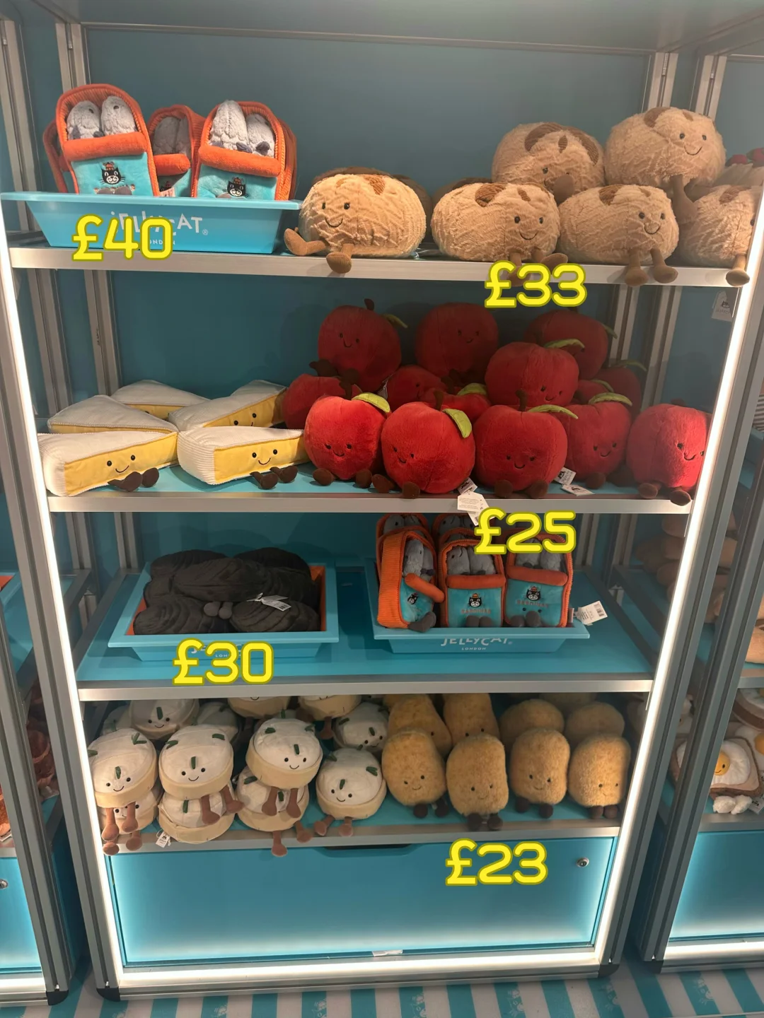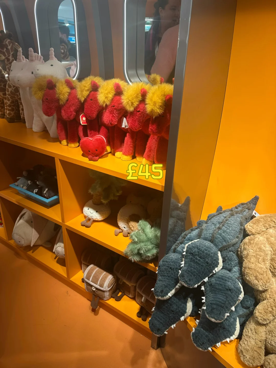 哈罗德四楼的Jellycat不用排队 联名款是巧克力草莓蛋糕(49.95磅) 春季新品货很多,🌽🍀🥦🐻🐰 情人节的也开始了,果断拿下爱心水煮蛋 马上过新年了🧨还有赤红天空龙&赤焰马 — 📌 Harrods|哈罗德百货 📍 87-135 Brompton Rd, London SW1X 7XL 🕙 10 am - 9 pm —