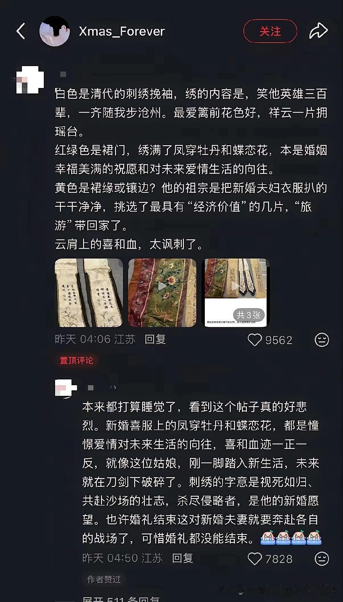 把洋人屠杀中国先人的罪证当传家宝拿出来炫耀,这不仅是无知更是无耻!!!”——各大平台近日第一热帖,一中国女子炫耀自己找了个比利时男友,并在中国网络上炫耀男友家的传家宝:一件被鲜血沾染的嫁衣。 这哪里是什么传家宝?分明是一把插在民族心口的刀!1900到1920年的中国,正是八国联军铁蹄踏碎山河的岁月,比利时作为侵华联军的一员,借着“保护侨民”的幌子,纵容士兵在京津一带烧杀抢掠,无数百姓家破人亡,这件沾血的嫁衣,大概率就是当年从受难者家中抢来的战利品。 女子沉浸在“洋男友”带来的虚荣里,对着镜头笑意盈盈,却没看见布料褶皱里嵌着的血痂,没听见百年前嫁衣主人的哭喊。她以为这是浪漫的跨国信物,却不知自己炫耀的,是民族伤痛被当众摩挲的难堪。 据《辛丑条约》档案记载,比利时虽出兵仅数十人,却凭借殖民特权分得近百万两白银的赔款,还在天津划定了租界。那些打着“贸易”旗号来华的比利时人,不少都参与过对民间财物的洗劫,这件嫁衣的“来路”,根本经不起历史的推敲。 更让人揪心的是,这种把侵略罪证当“爱情注脚”的行为,不是个例。当部分年轻人沉迷于跨国恋的浪漫叙事时,却对近代中国的殖民史集体失忆,甚至把掠夺来的物品当成“文化浪漫”,这才是最刺痛人心的地方。 我们反对的从来不是跨国爱情,而是对历史的漠视。真正的文化自信,不是否定过去,而是读懂历史后依然热爱当下;真正的爱情,也不该建立在对他人苦难的无视之上。这件嫁衣不该是炫耀的资本,而该是提醒我们铭记历史的警钟。 各位读者你们怎么看?欢迎在评论区讨论。